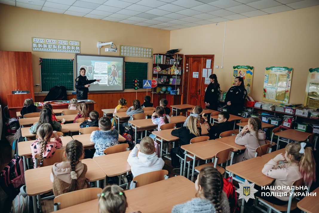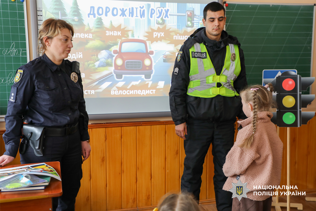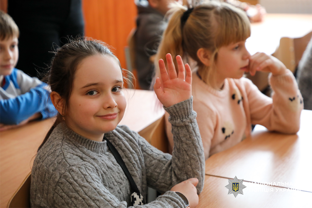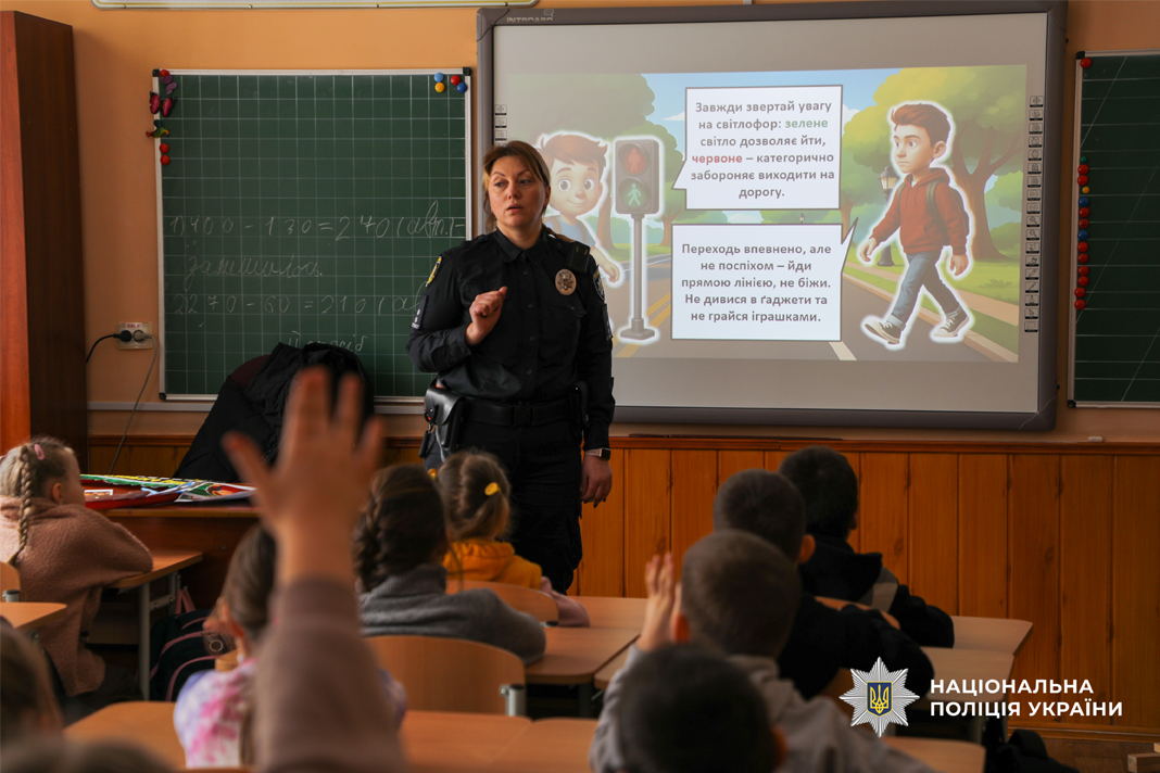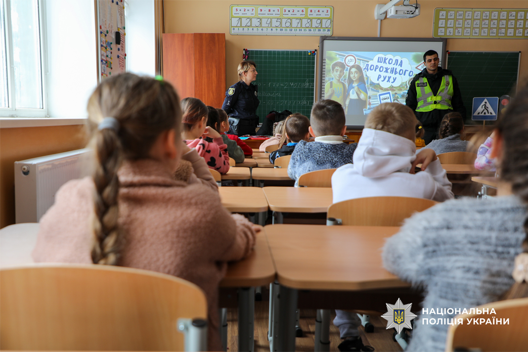 Поліцейські роз’яснили ключові правила переходу дороги та типові ризики, з якими стикаються пішоходи. В ігровій формі поліцейські сектору реагування патрульної поліції дітям нагадали жести регулювальника. Окрему увагу приділили темі видимості на дорозі. Інспектори пояснили, як флікери допомагають водіям вчасно помітити пішохода у темну пору доби. Школярі не лише слухали, а й активно долучалися до обговорення, ділилися власними історіями та разом із гостями відпрацьовували алгоритми дій у небезпечних ситуаціях.