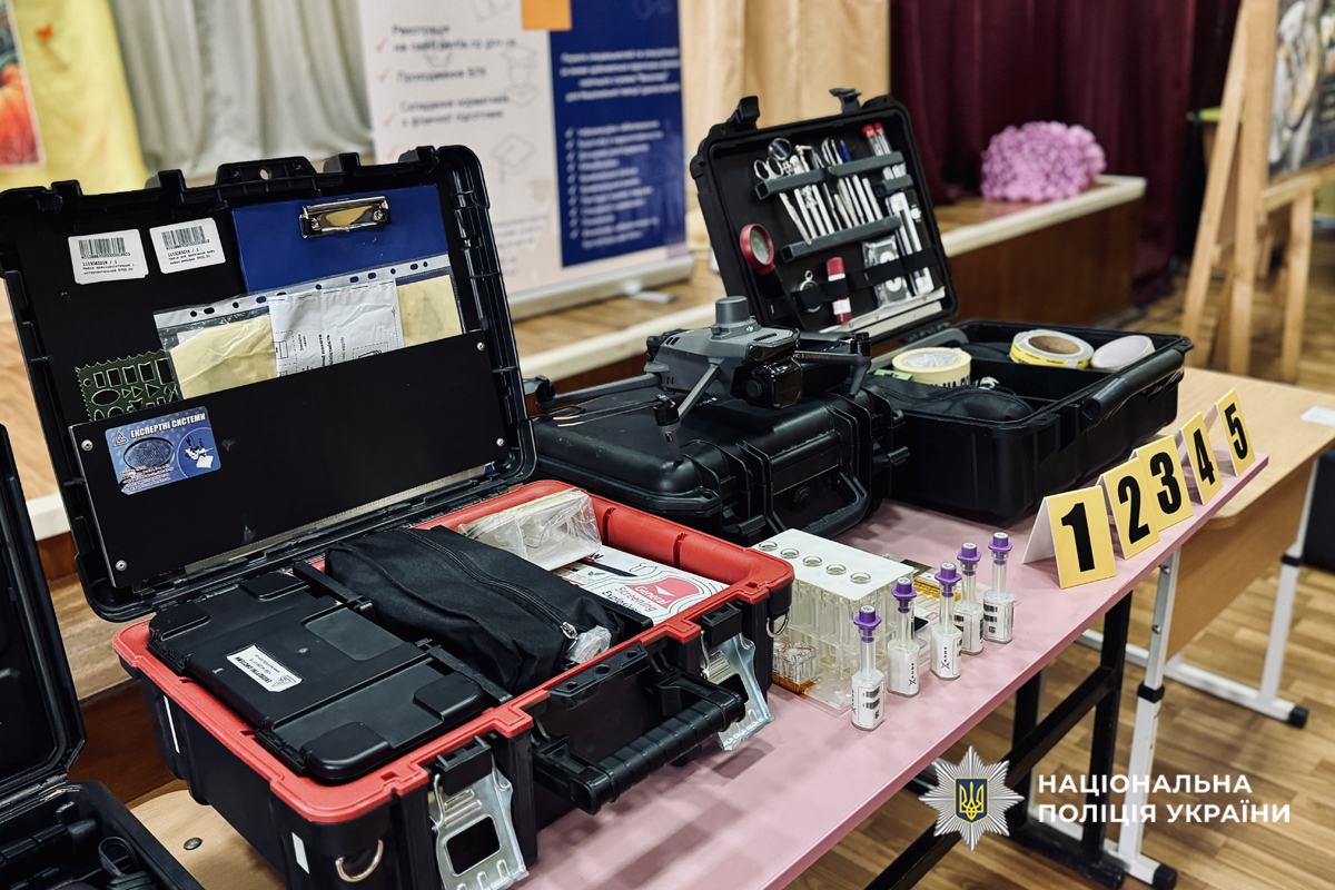 Спеціаліст-криміналіст слідчого управління продемонстрував учням криміналістичну валізу, розповів про специфіку своєї роботи та значення сучасних технологій у розкритті злочинів.
