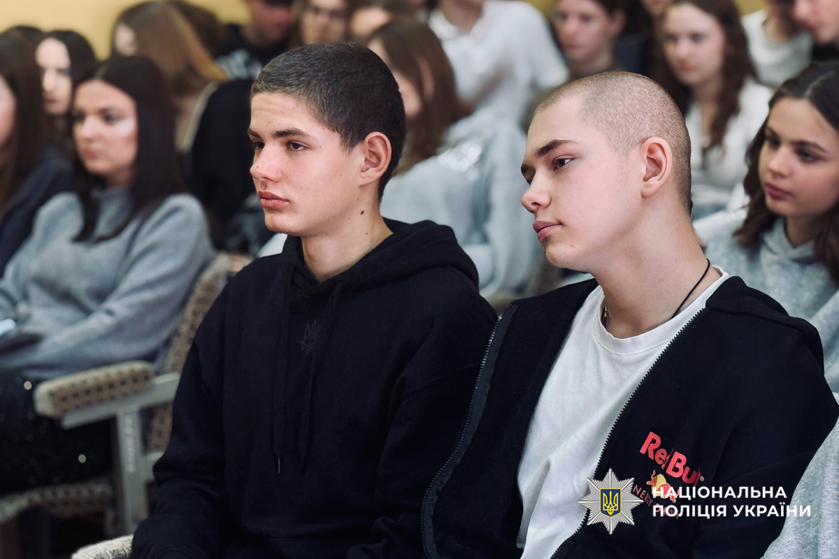 Поліцейська управління боротьби з наркозлочинністю Ірина Білоус розповіла школярам про шкідливий вплив наркотичних речовин на організм, наголосила на відповідальності за їх незаконний обіг та звернула увагу на небезпеку нових психоактивних речовин, зокрема кратому.