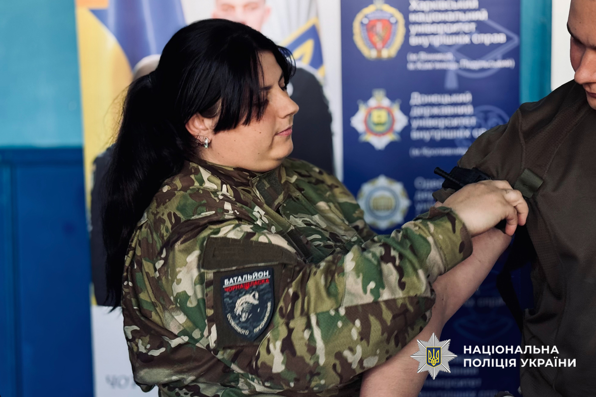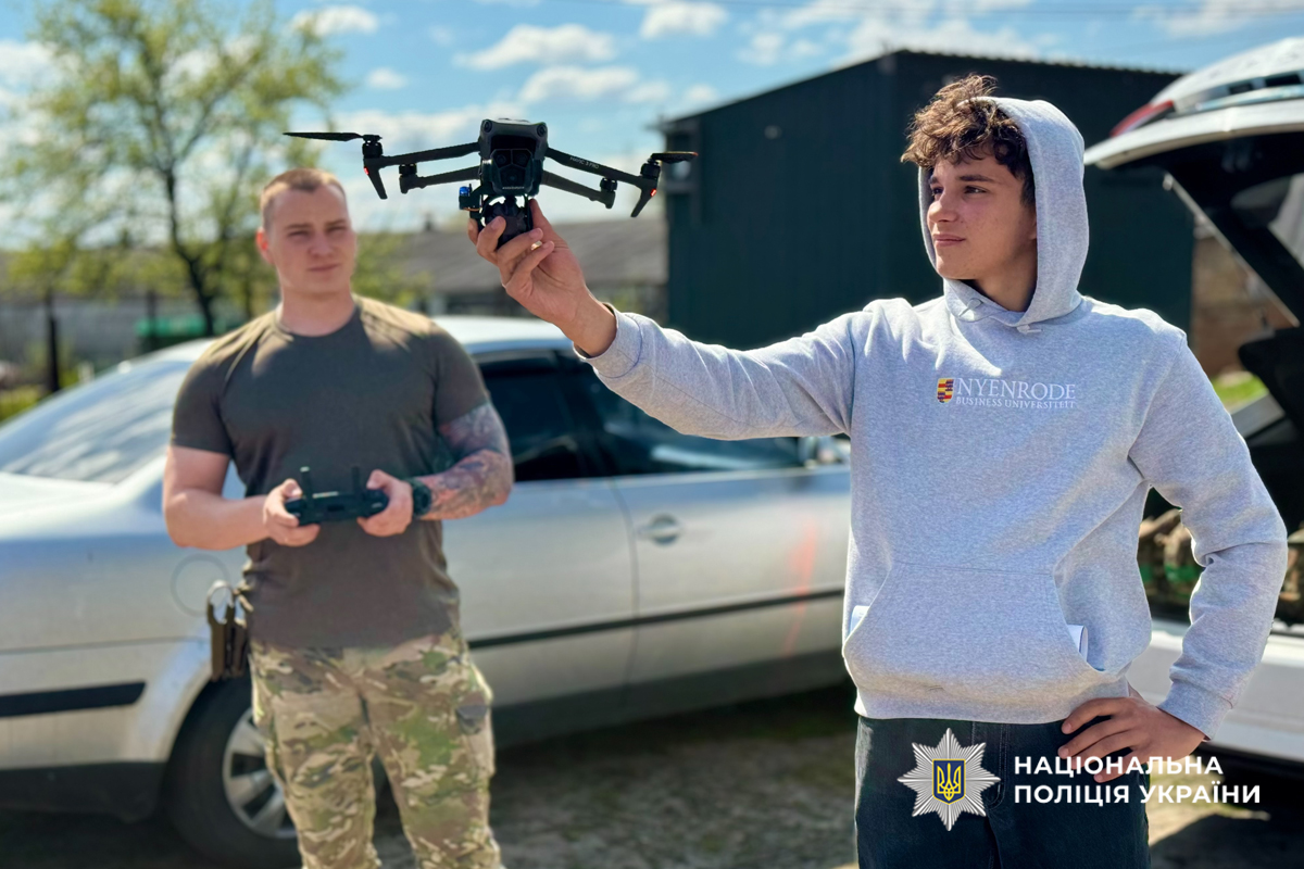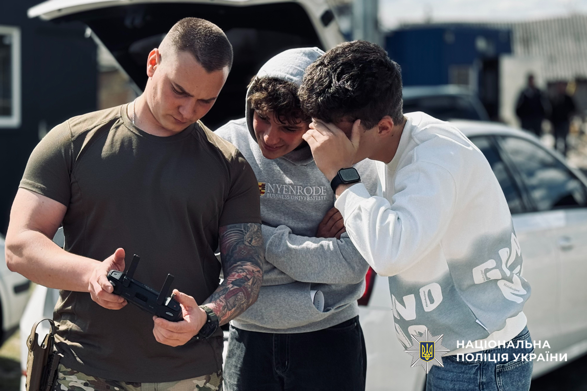 До заходу також долучилися бійці батальйону поліції особливого призначення (стрілецький). Оператори безпілотних літальних апаратів розповіли про роботу екіпажів БПЛА, їх підготовку та роль дронів у сучасних умовах. Учні мали змогу не лише побачити екіпірування, а й спробувати себе у ролі операторів, керуючи навчальними дронами.