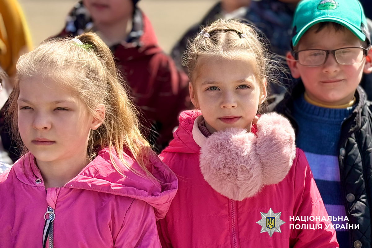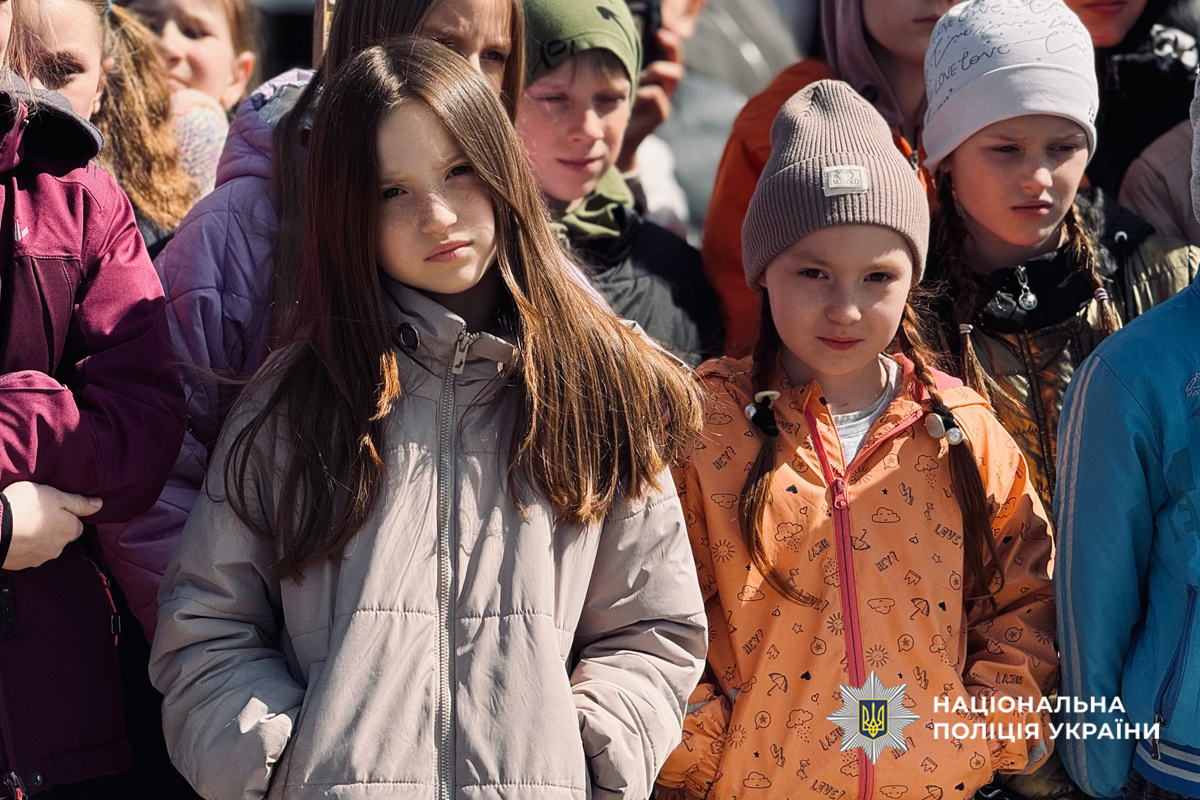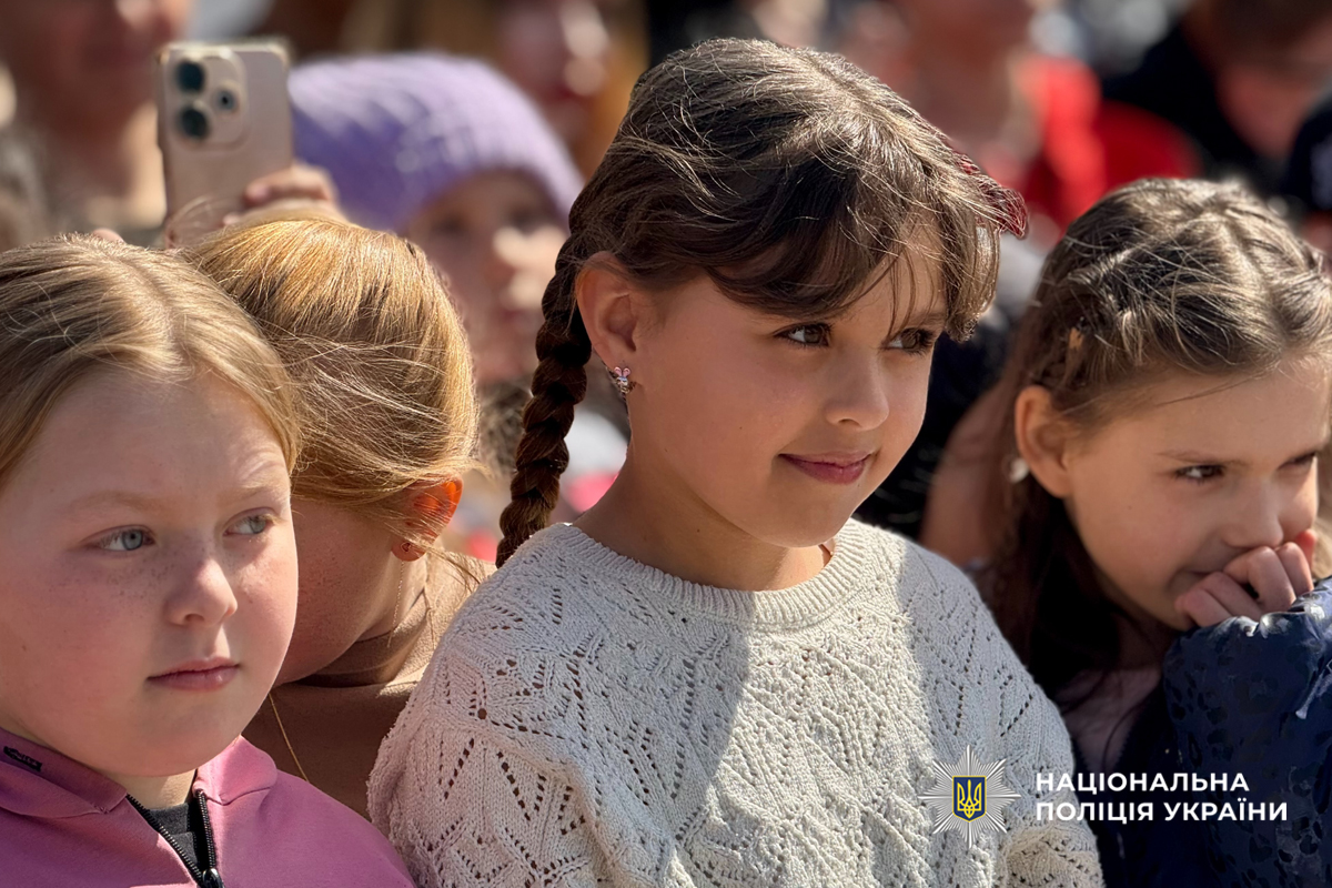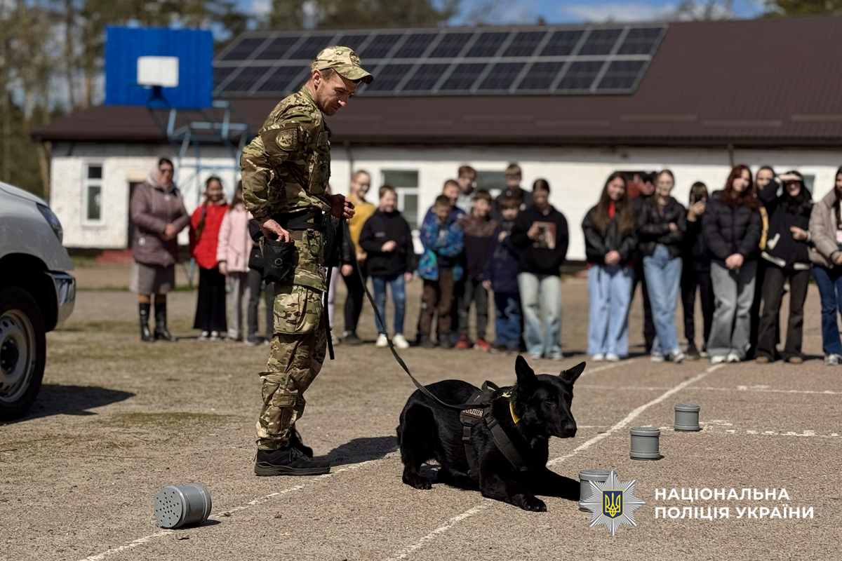 Завершився захід показовим виступом поліцейських кінологічного центру. Правоохоронці розповіли про особливості підготовки службових собак та продемонстрували їхні навички з пошуку вибухових речовин. Після виступу школярі мали можливість поспілкуватися з чотирилапими напарниками та зробити із ними фото.