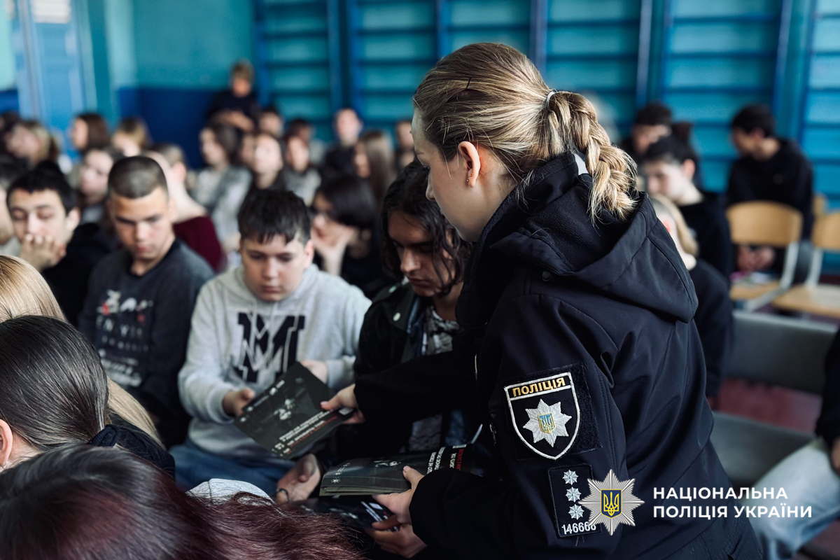 Поліцейська відділу міграційної поліції розповіла школярам про явище торгівлі людьми та способи протидії таким злочинам.