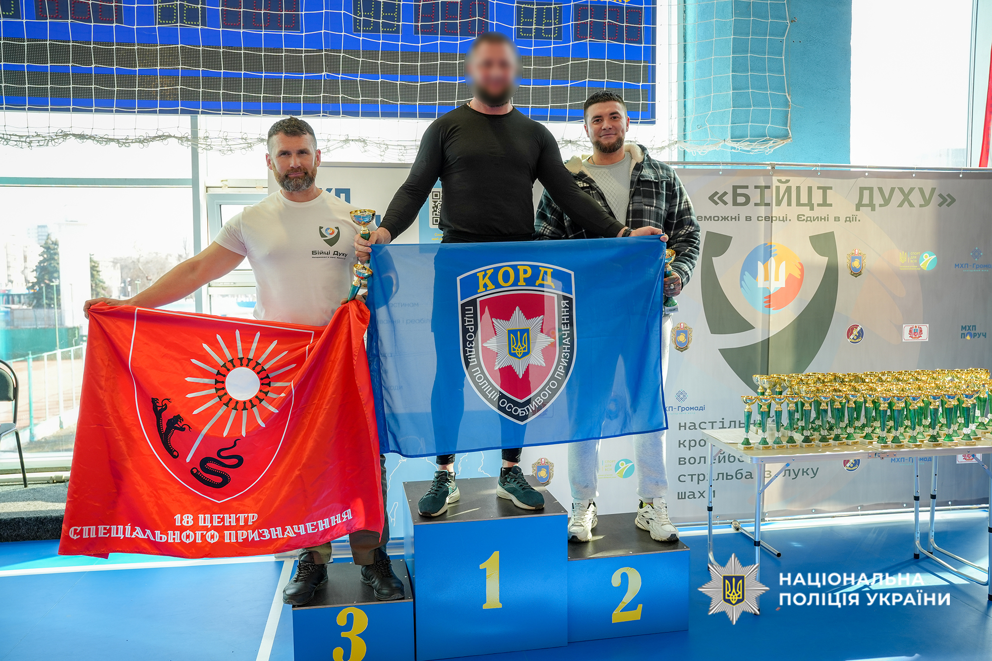 Перше місце серед чоловіків у категоріях 100 м, 100 секунд та 500 м здобув Владислав Борданов, поліцейський управління КОРД ГУНП в Черкаській області.