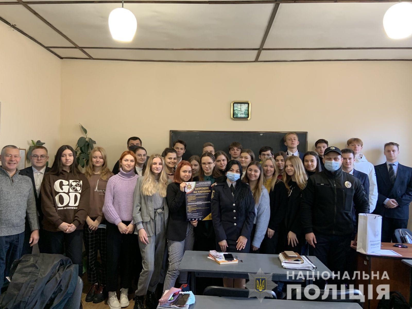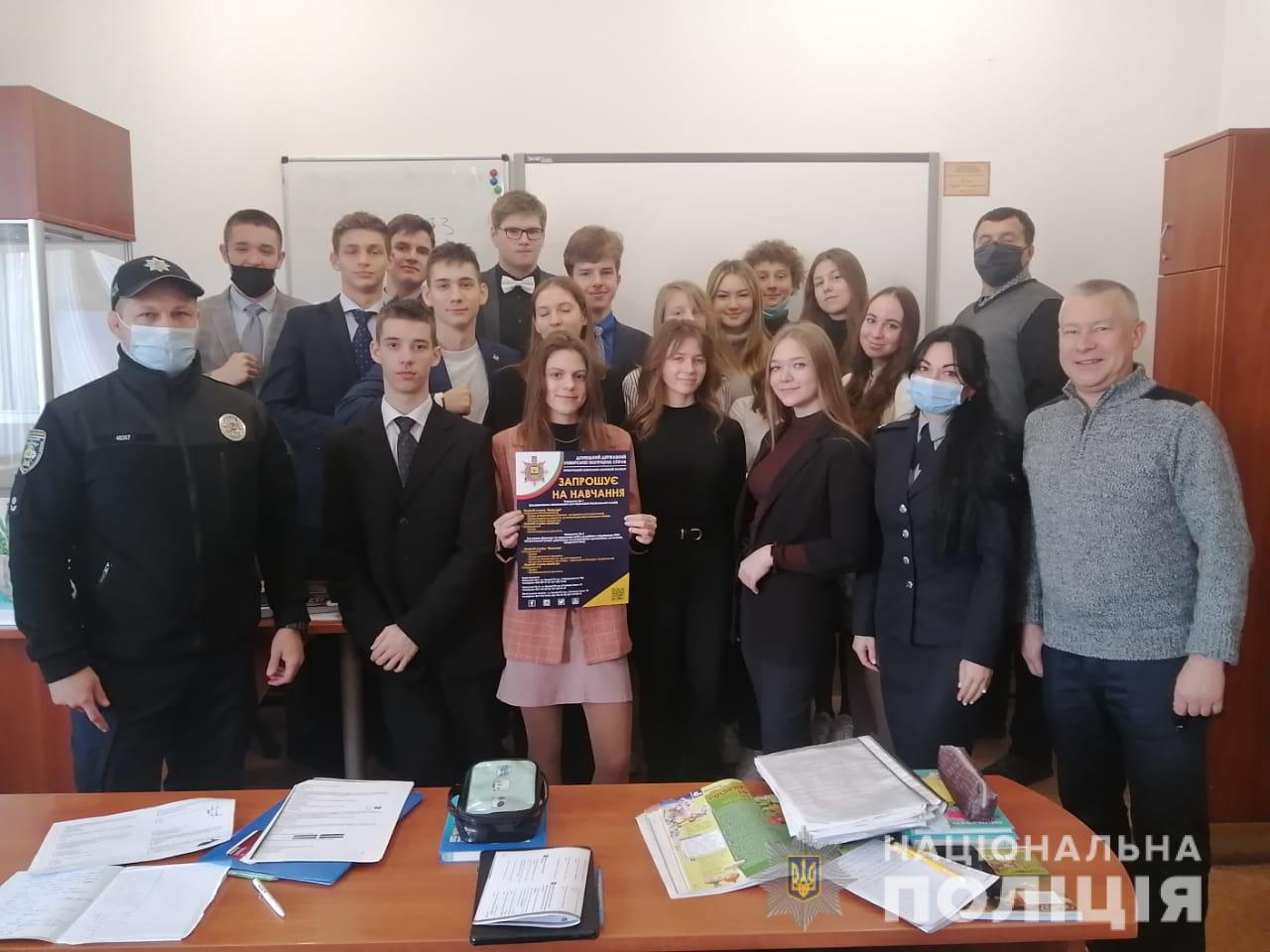 У ході зустрічі школярі дізналися про професією поліцейського та напрямками його діяльності, а також про умови вступу до закладів вищої освіти зі специфічними умовами навчання які здійснюють підготовку поліцейських, за кошти державного бюджету на денній формі навчання.