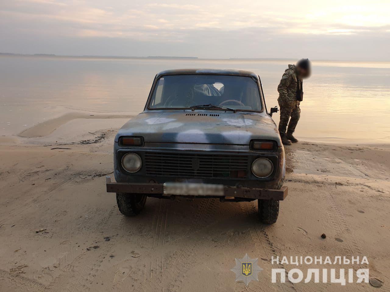 Поліцейські задокументували факт незаконного вилову й вилучили автомобіль в якому було сім месинових сіток та рибу.