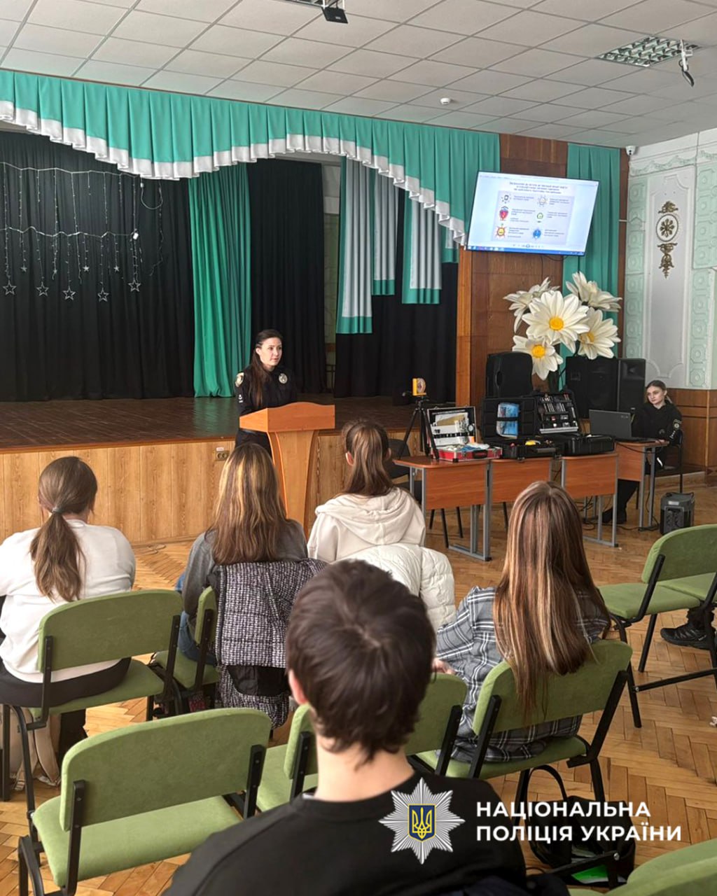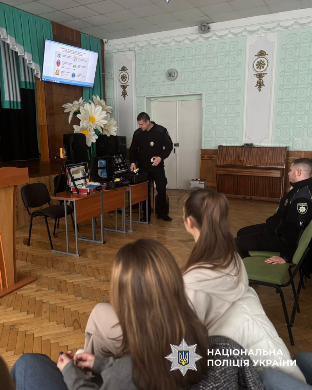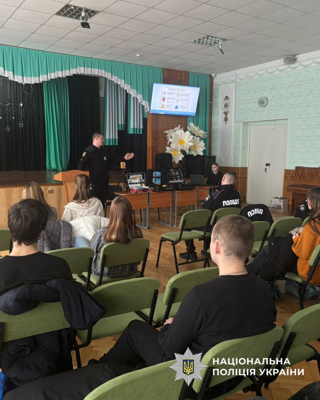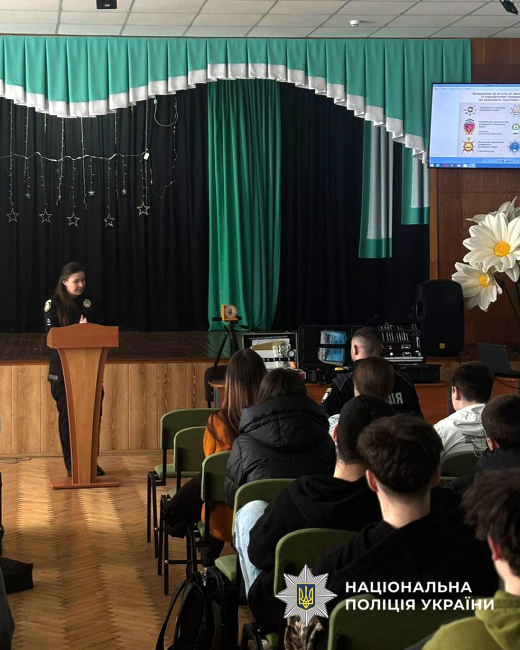 Правоохоронці ознайомили випускників із умовами вступу до закладів вищої освіти зі специфічними умовами навчання, що здійснюють підготовку поліцейських. Розповіли про етапи відбору кандидатів, вимоги до стану здоров’я, фізичної підготовки та рівня освіти, а також про особливості навчального процесу, дисципліну та перспективи служби в Національній поліції України.