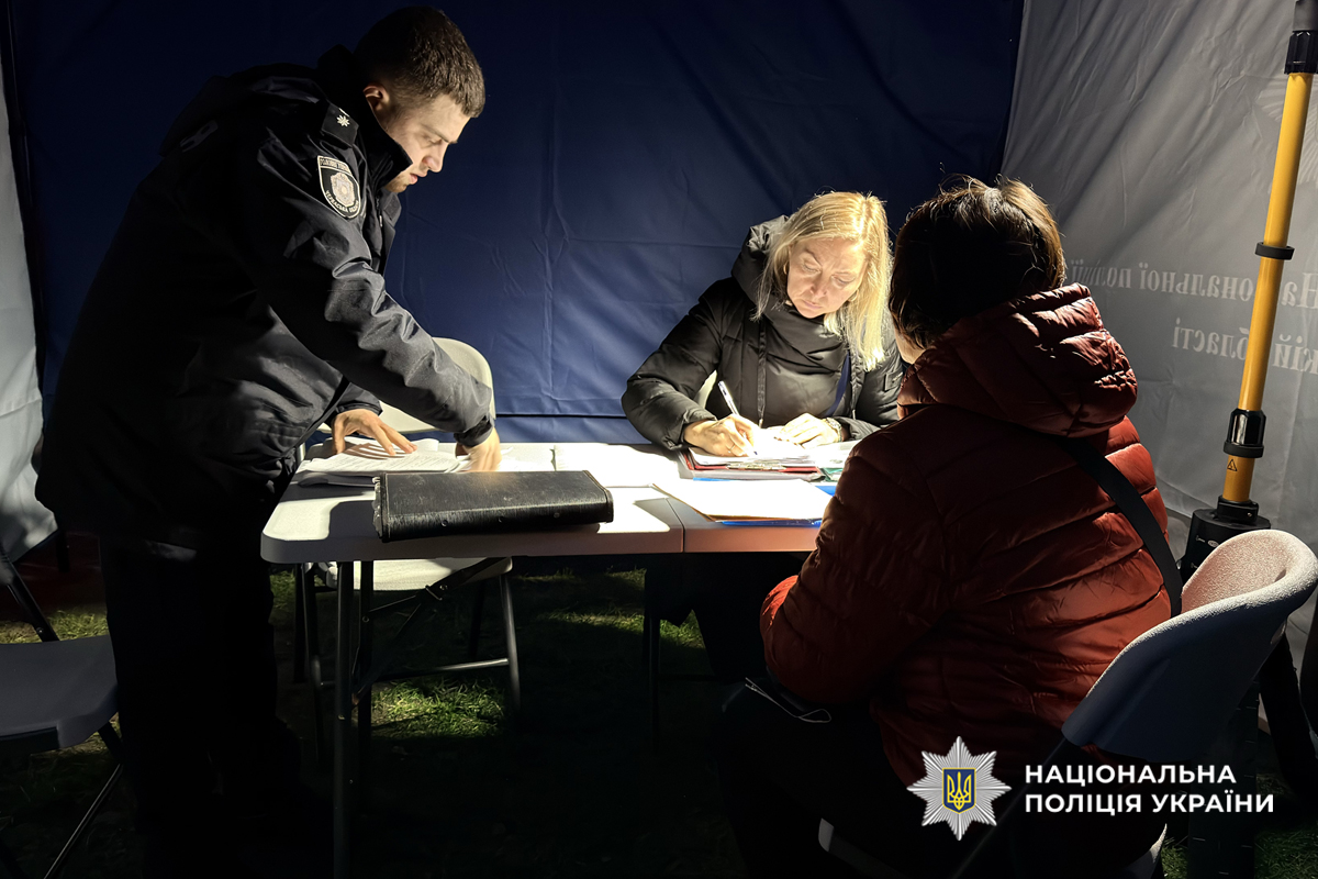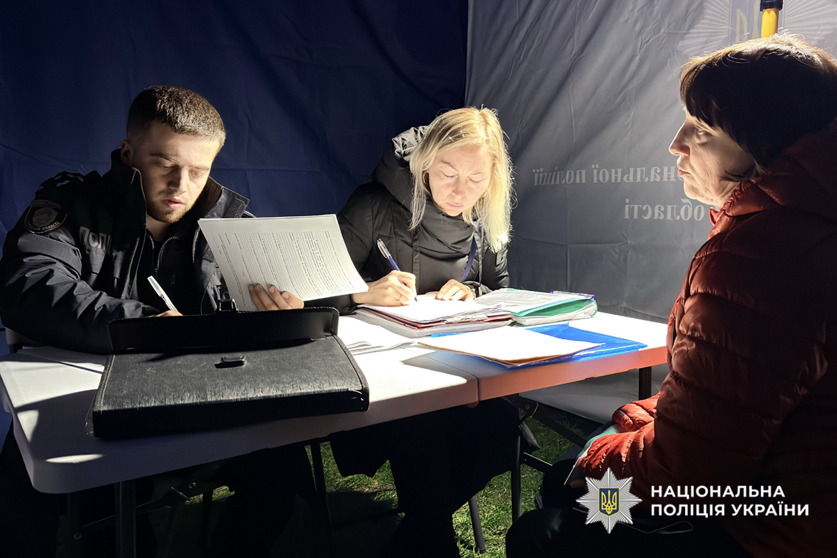 Розгорнуто мобільний пункт поліції – проводиться прийом звернень від громадян, які постраждали внаслідок російської атаки. Кожен мешканець може звернутися до поліцейських із заявою щодо пошкодженого або знищеного майна.