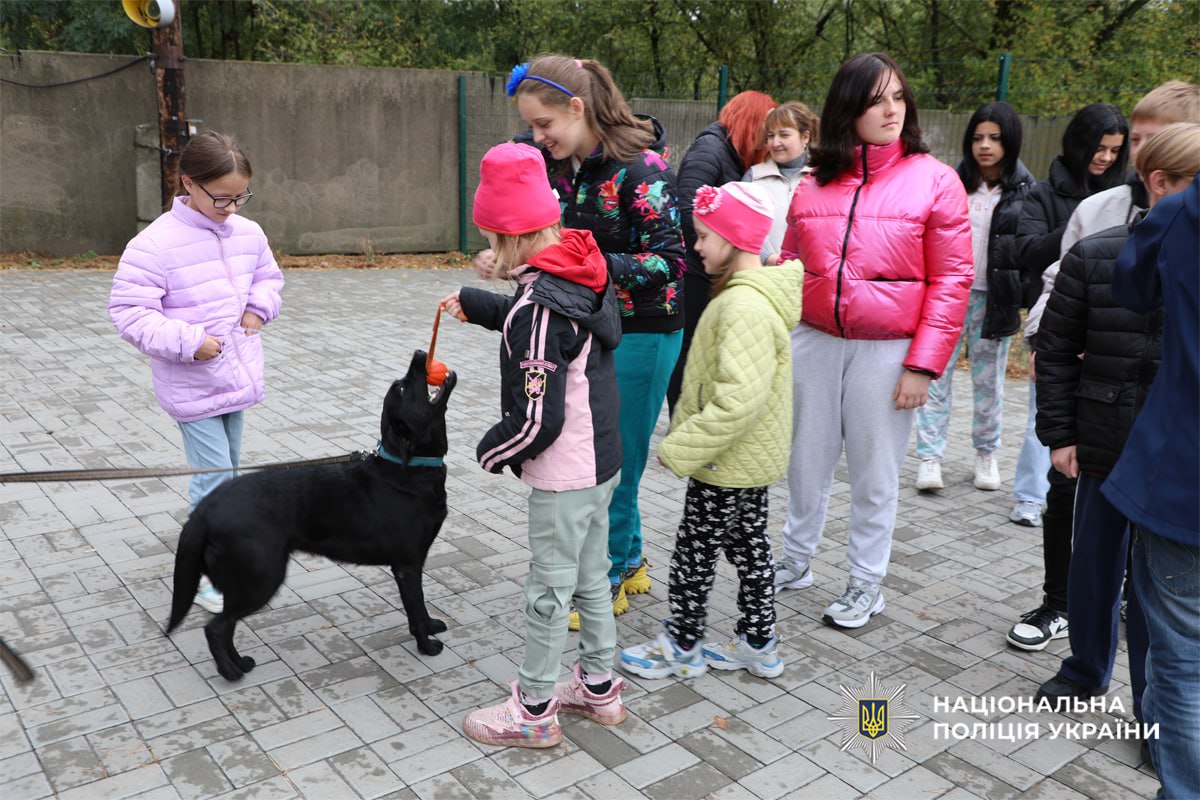 На початку заходу кінологи показали гостям вольєри, де утримуються собаки, після чого продемонстрували їх навички, завдяки яким поліцейські собаки допомагають затримувати порушників.