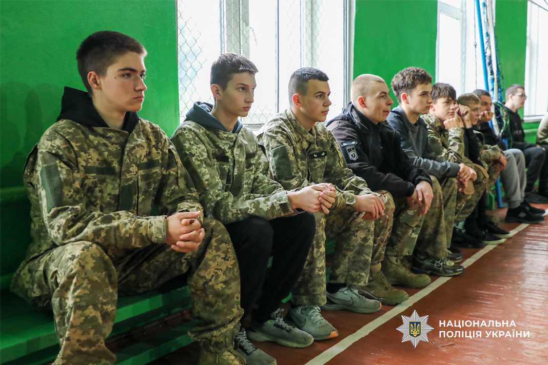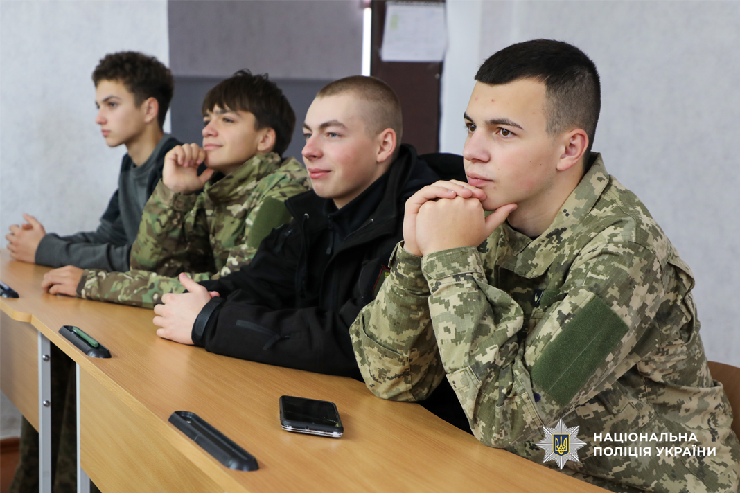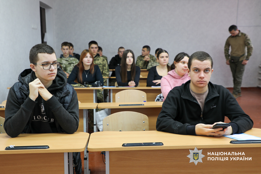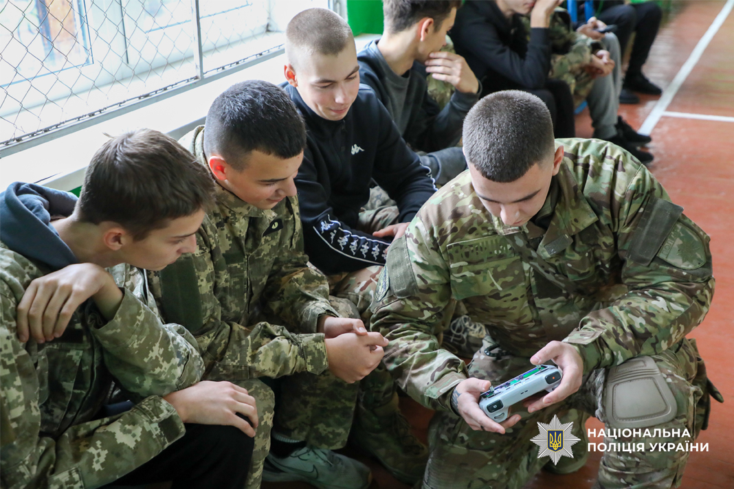 Під час зустрічі поліцейські розповіли учням про специфіку служби в підрозділах особливого призначення та презентували інтерв’ю свого побратима, який нині захищає Україну.