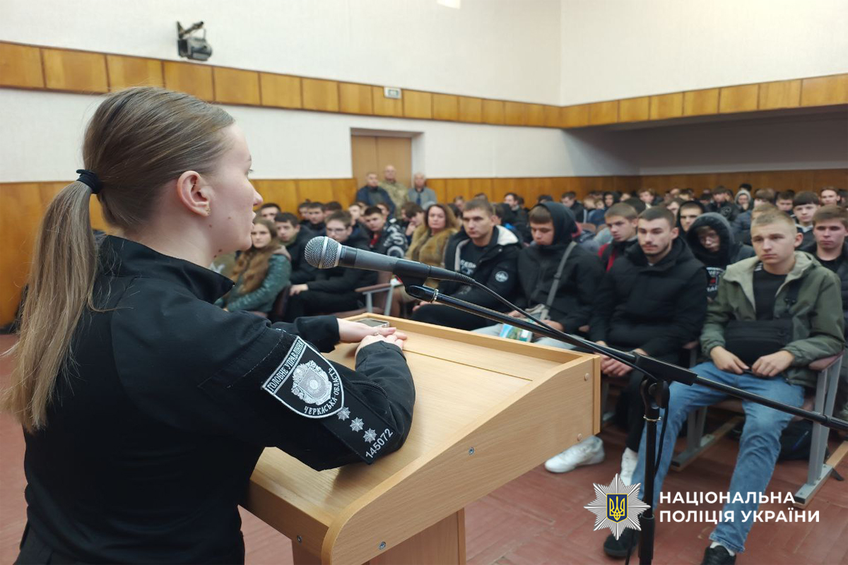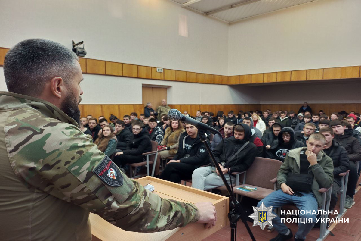 Командир спеціального підрозділу поліції “Чорна ласка” Олександр Черкавський, та представники ювенальної поліції Черкаського районного управління поліції зустрілися зі студентами Черкаського професійного автодорожнього ліцею.