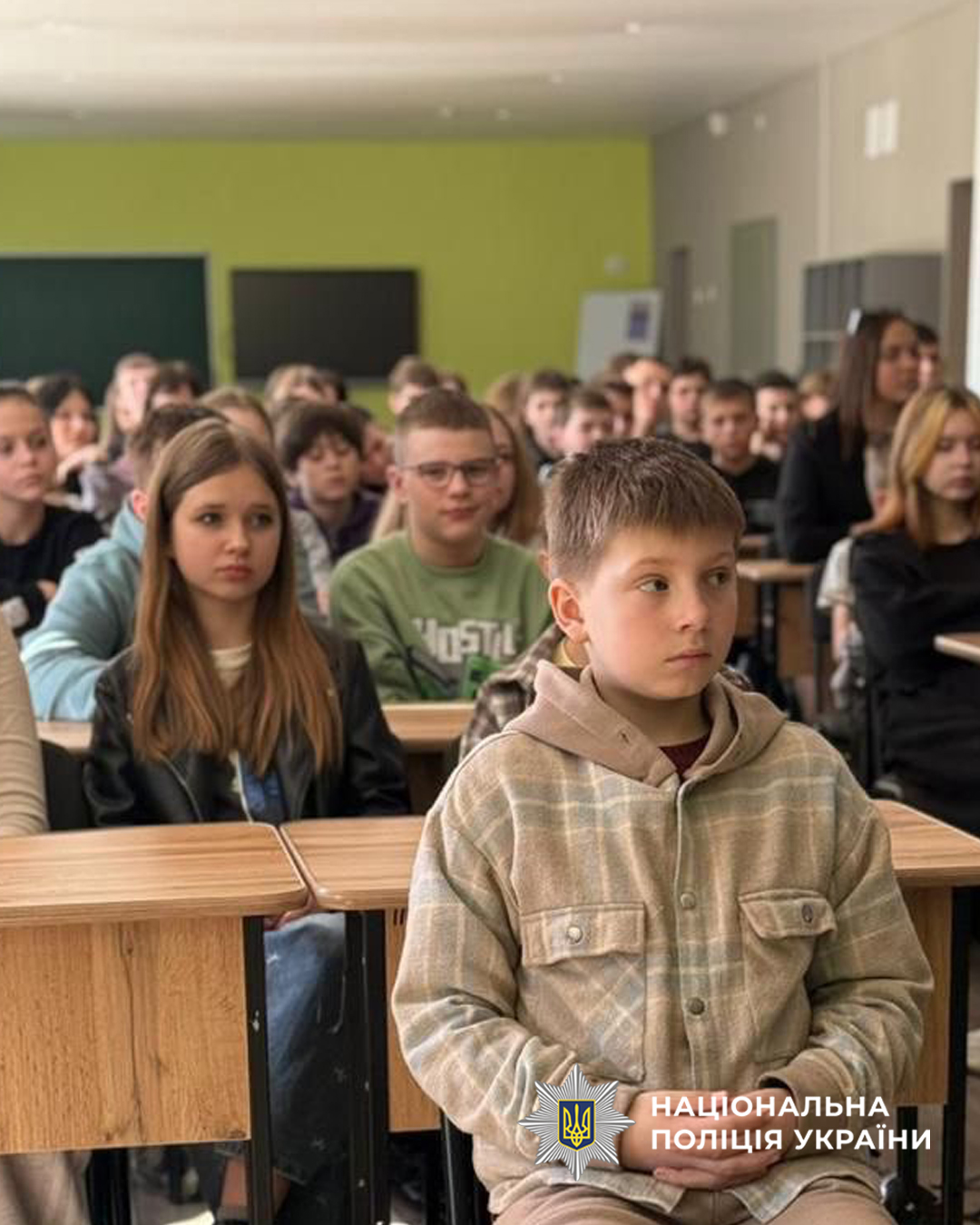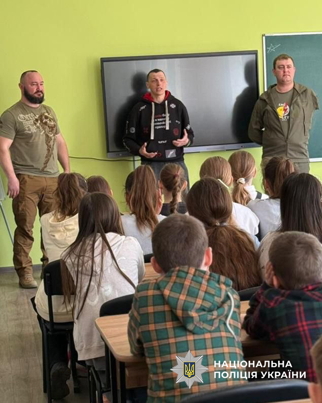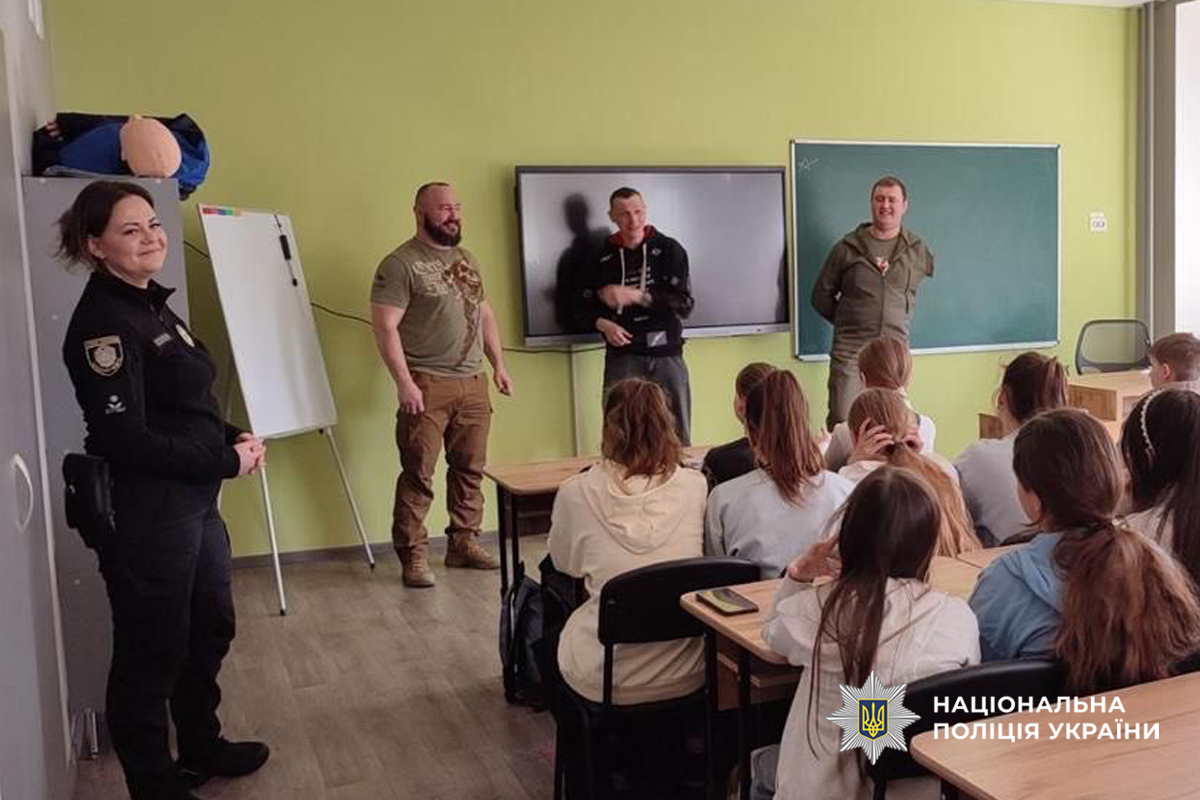 Поліцейська Служби освітньої безпеки Ярослава Швиденко разом із ветеранами громадської організації «Ветеранська підтримка ЧТГ» провели пізнавальне заняття для школярів 6–8 класів Чорнобаївського ліцею.