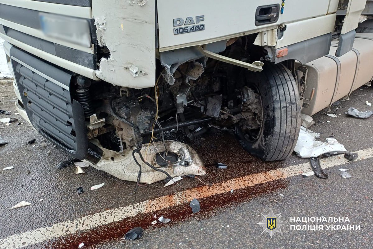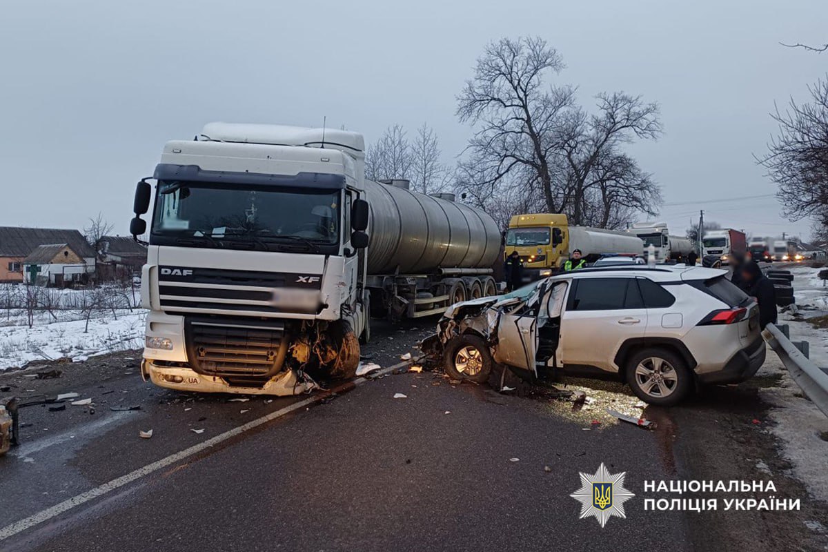 34-річний водій автомобіля «Toyota RAV4» не обрав безпечної швидкості руху, не впорався з керуванням, виїхав на зустрічну смугу та допустив зіткнення з вантажівкою «DAF XF» під керуванням 61-річного водія.