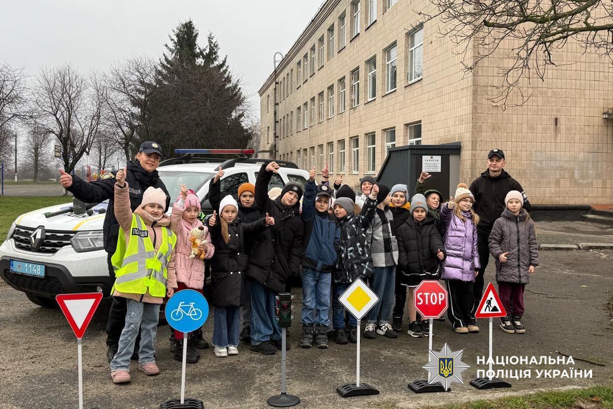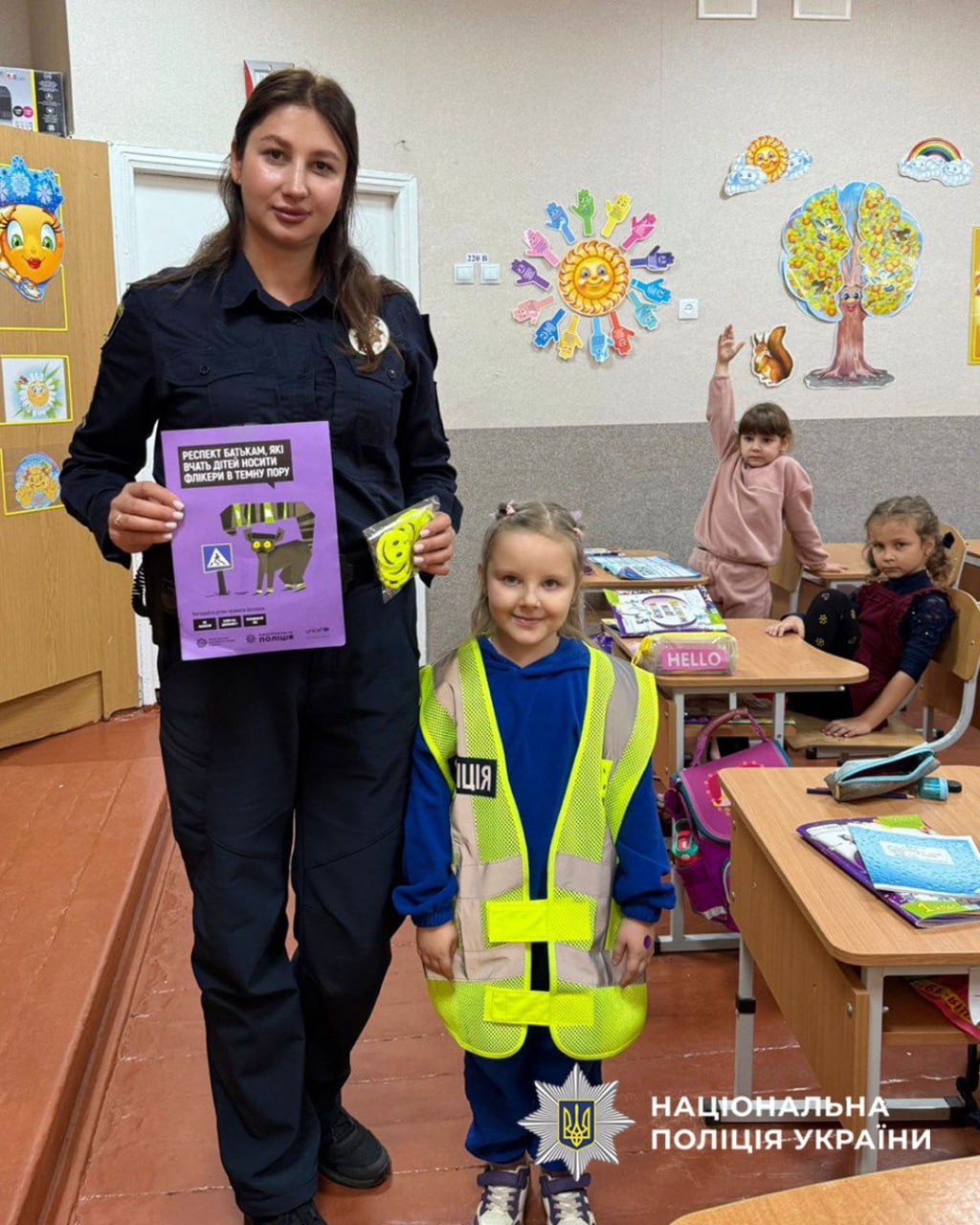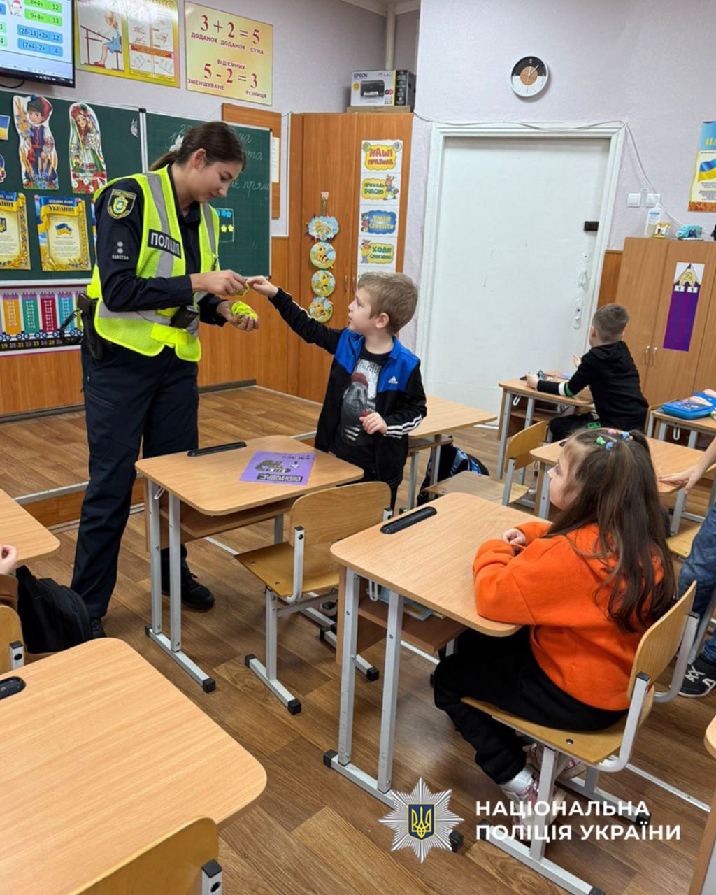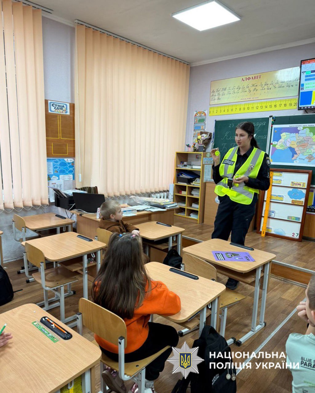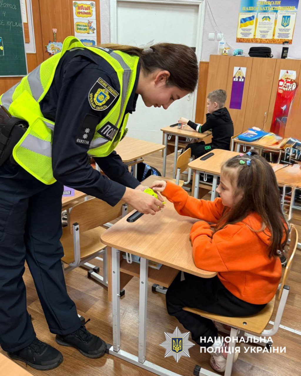 Флікери на одязі — не дрібниця: золотоніські поліцейські розповіли школярам про безпеку на дорозі