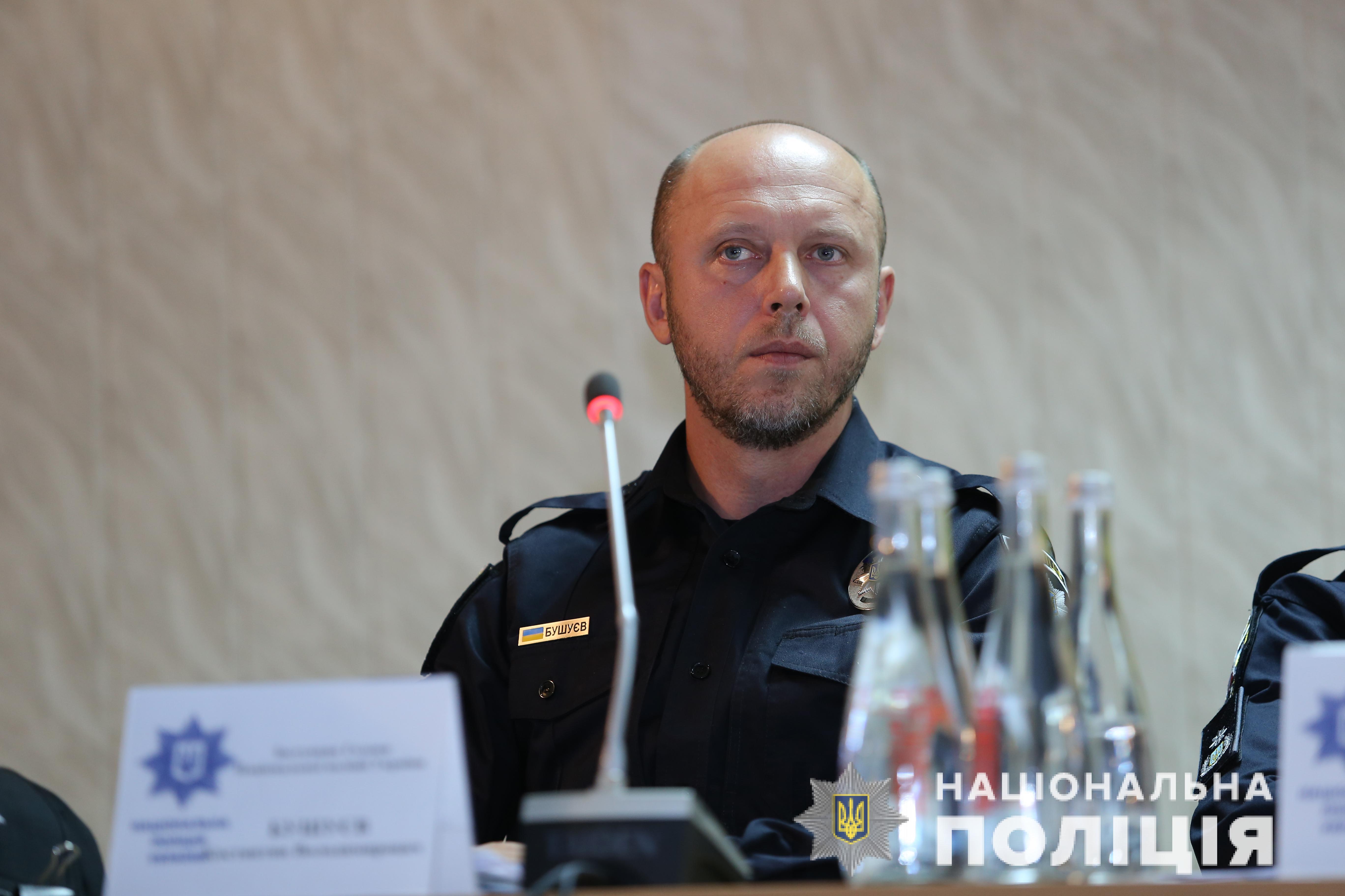 Заступник глави Нацполіції Костянтин Бушуєв ознайомив присутніх з виявленими в ході перевірки роботи ГРПП порушеннями та проблемними питаннями.