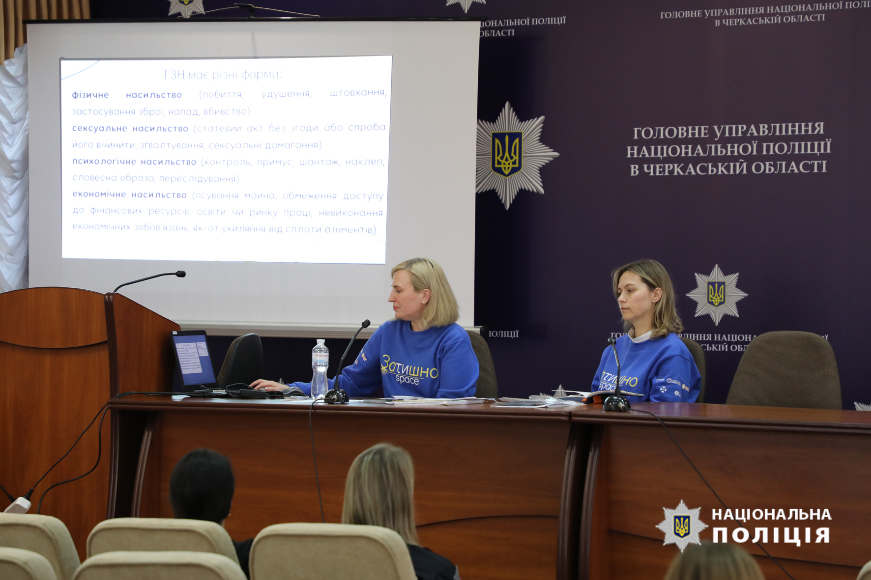 З метою належного виконання вимог Плану заходів Національної поліції України з реалізації Національного плану дій з виконання резолюції Ради Безпеки ООН 1325 «Жінки, мир, безпека», на базі ГУНП в Черкаській області пройшли заняття на тему «Гендерно зумовлене насильство та його прояви».