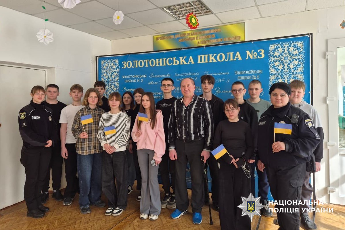 Поліцейські Служби освітньої безпеки Золотоніського райвідділу поліції спільно з військовим провели пізнавальну та патріотичну зустріч для школярів Золотоніської загальноосвітньої школи №3.