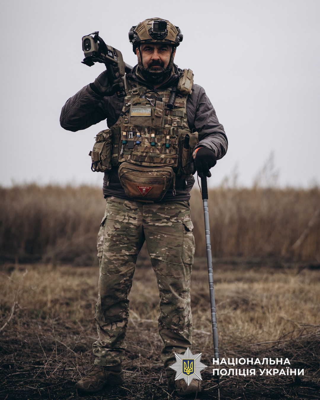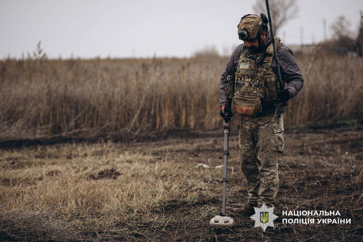 “Уся територія, де були окупанти, — замінована. Це не лише поля чи посадки — це адміністративні будівлі, житлові будинки, дитсадки, лікарні та інша цивільна інфраструктура”, — розповідає поліцейський.