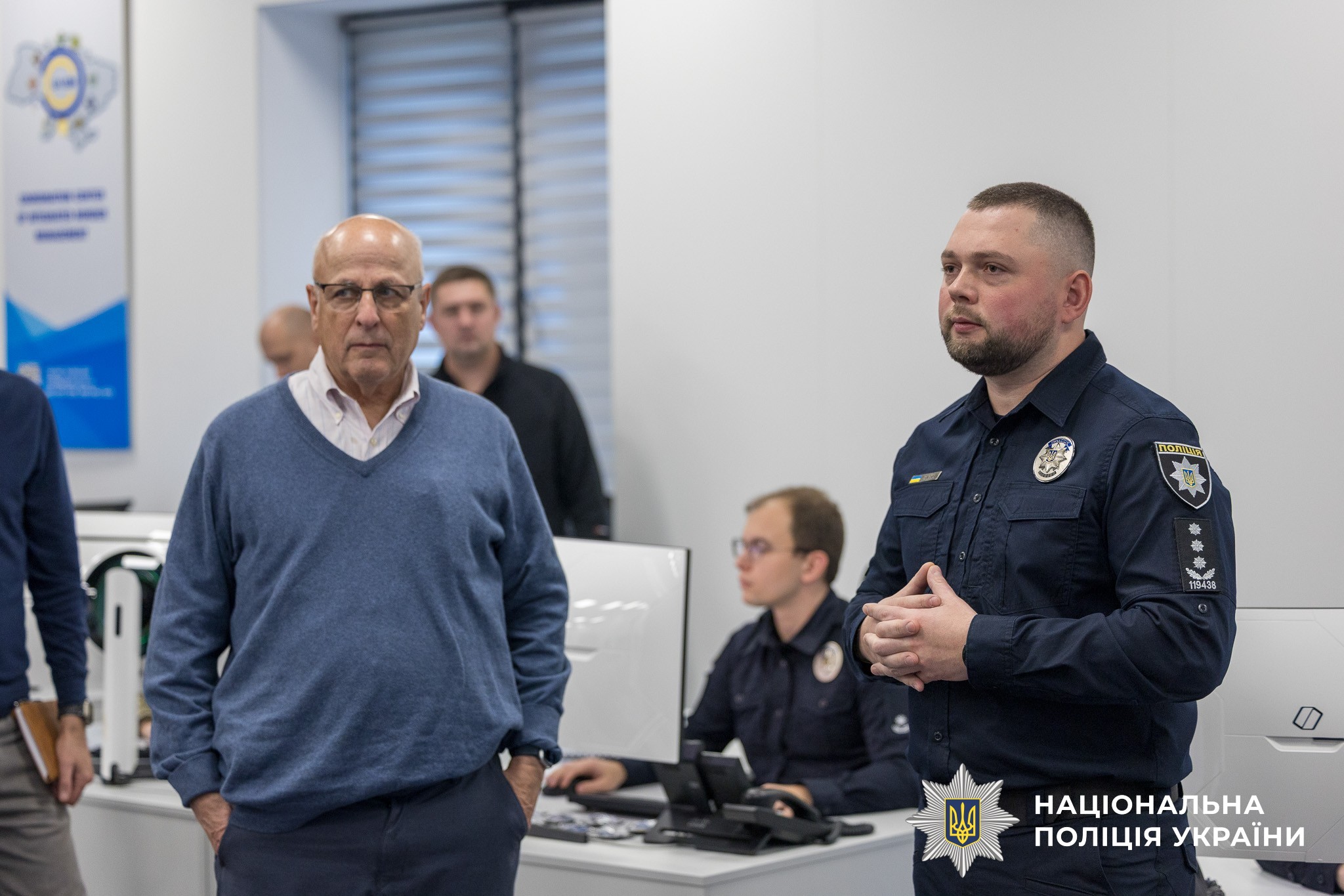 Також партнерів ознайомили з роботою Ситуаційного центру МВС України. Керівник Департаменту кримінального аналізу Роман Бутко розповів про роботу поліцейських аналітиків під час розкриття воєнних злочинів та ідентифікації воєнних злочинців за наявними фото відеофіксації. Разом з тим, делегація відвідала та ознайомилася з роботою Національного координаційного центру з питань вогнепальної зброї (NFFP).
