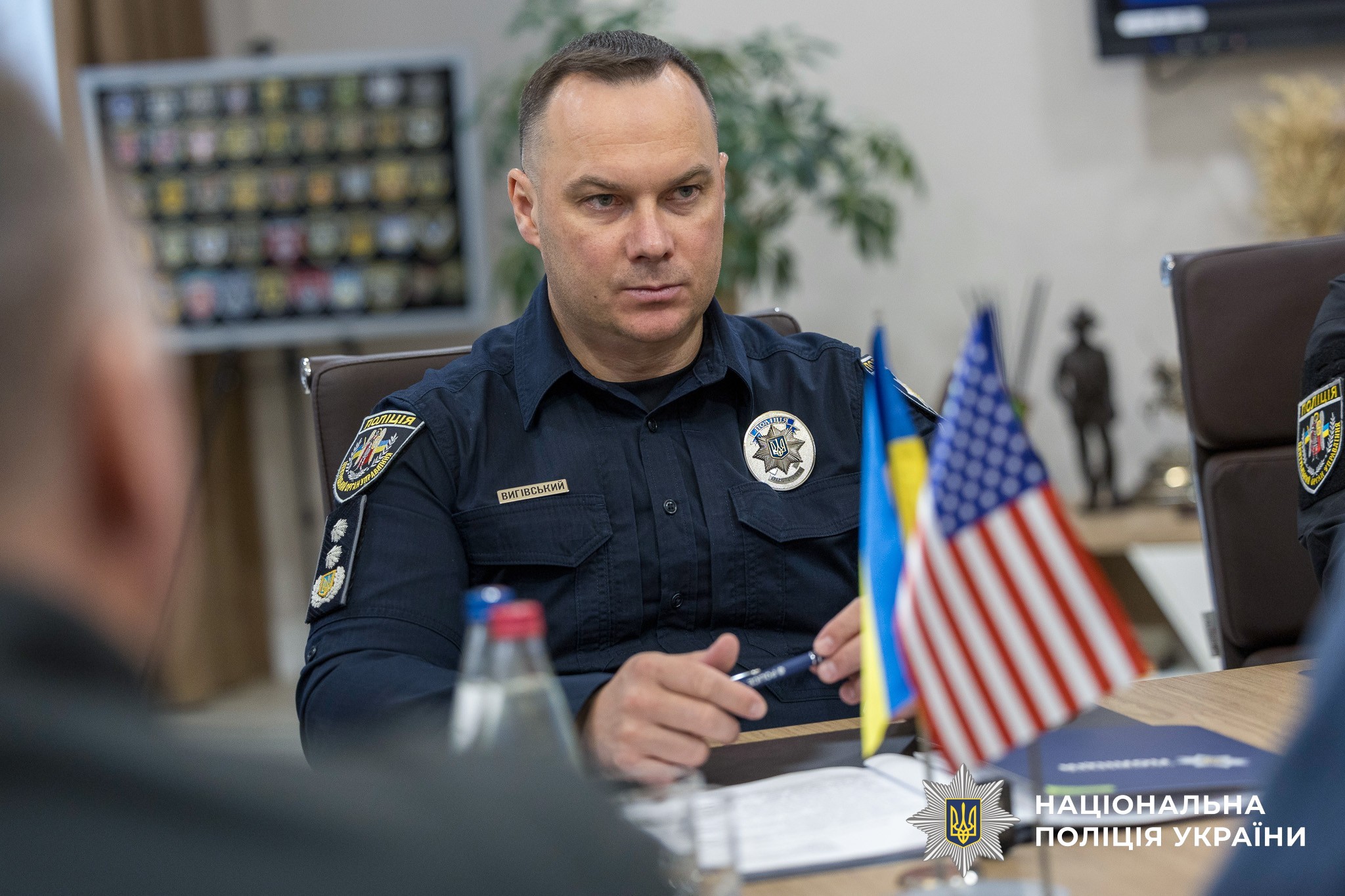 Голова Національної поліції України Іван Вигівський провів робочу зустріч із делегацією Сполучених Штатів Америки за участю виконавчого директора Поліцейського дослідницького форуму (PERF) Чака Векслера.
