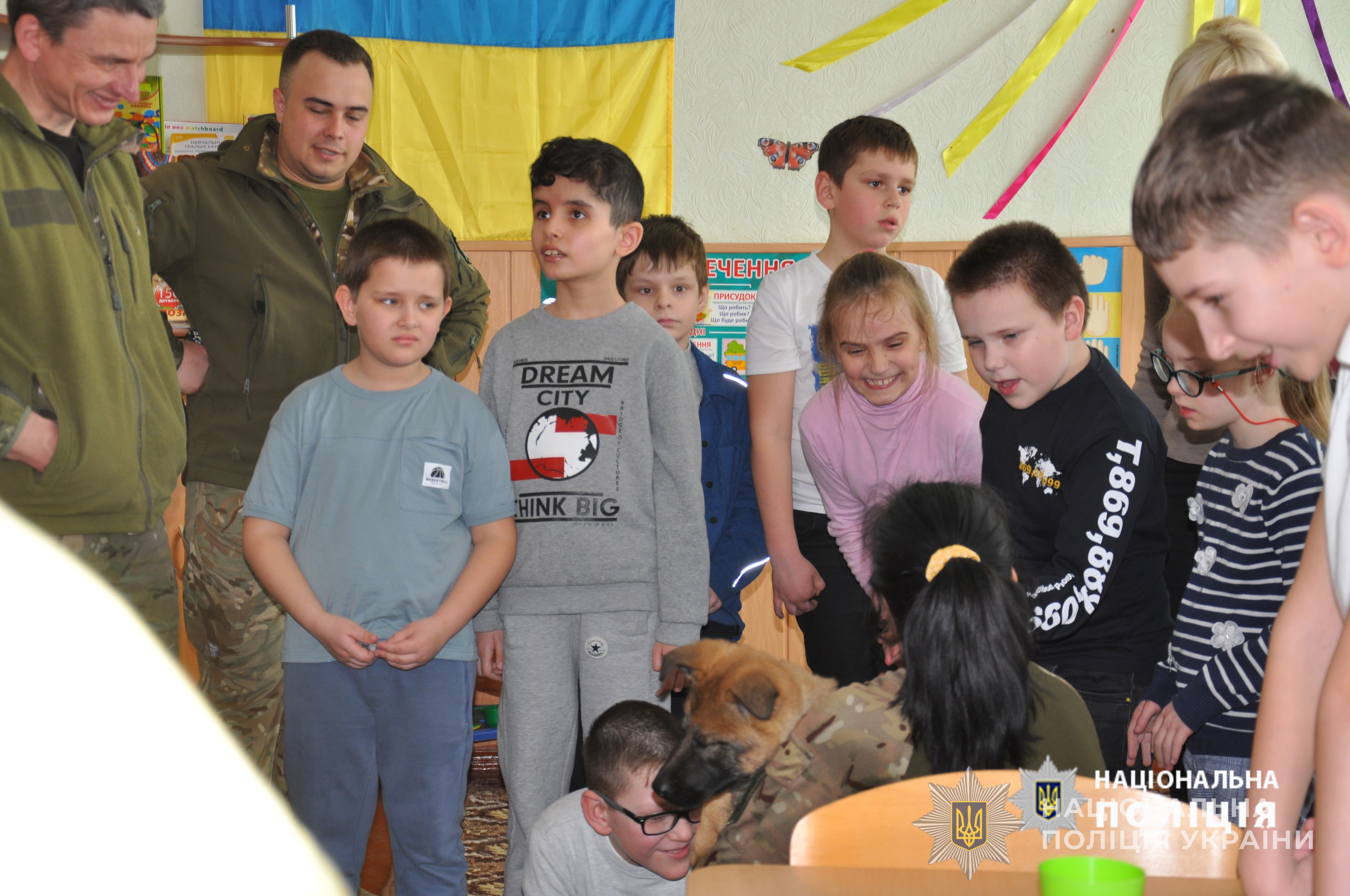 Цього разу «зірками» дня стали службова вівчарка Гера та її юна колега – цуценя Айка. Під чітким керівництвом своїх наставників-кінологів вони продемонстрували злагоджену роботу та неймовірну кмітливість. Діти з затамованим подихом спостерігали за кожним рухом тварин, а потім мали змогу досхочу погладити хвостатих друзів, погратися з ними й відчути їхню безмежну доброту.