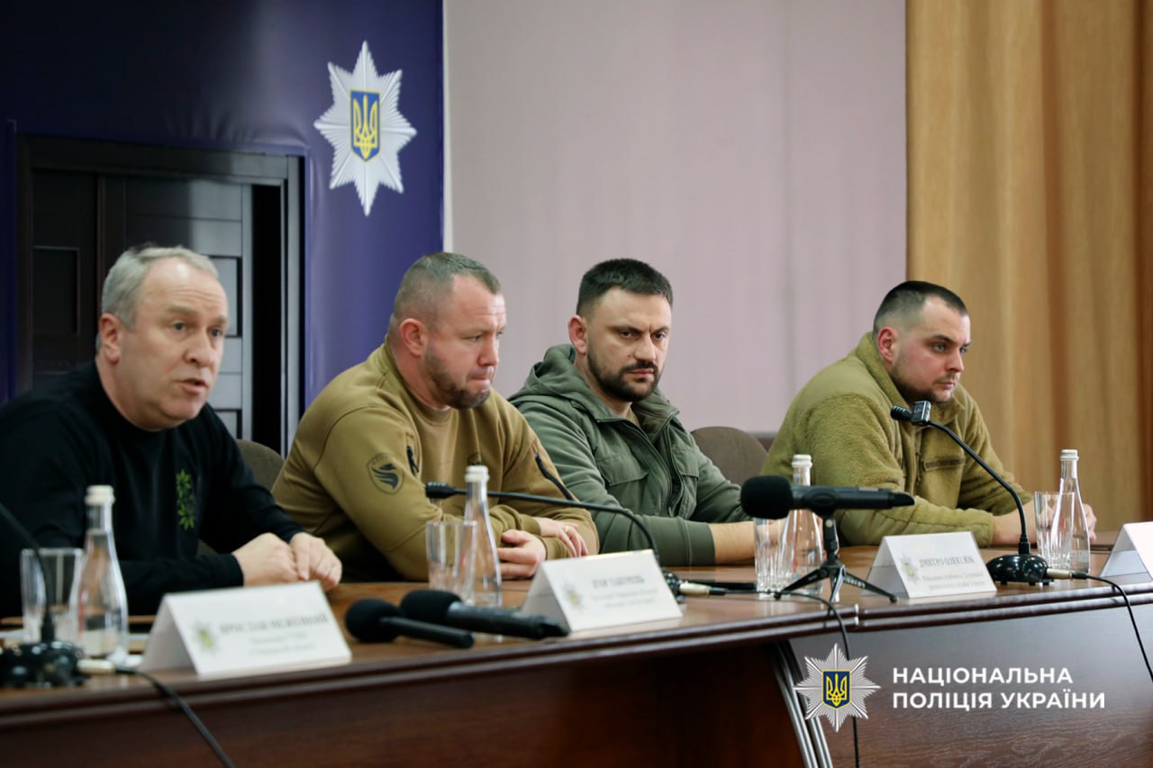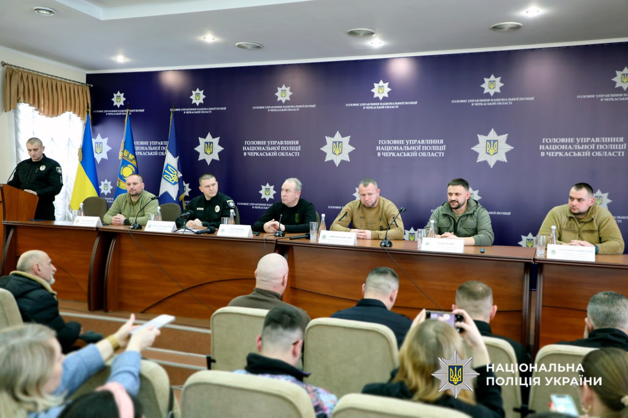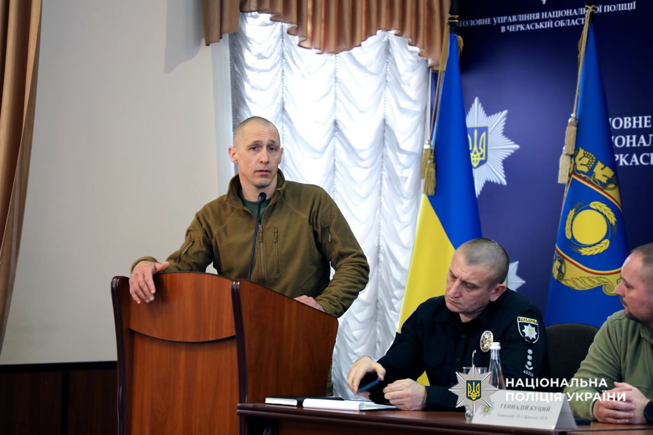 До Головного управління Національної поліції в Черкаській області завітали бойові командири: Геннадій Куций – полковник Національної гвардії України, учасник російсько-української війни, командир 18-ї бригади НГУ, Герой України (2025), Олег Гуйт – полковник Збройних сил України, учасник російсько-української війни, командир 427-ї окремої бригади безпілотних систем “Рарог”, Герой України (2026), Дмитро Олексюк – полковник Державної прикордонної служби України, учасник російсько-української війни, що відзначився в ході російського вторгнення в Україну, Герой України (2024) та Анатолій Куликівський – полковник Сухопутних військ Збройних Сил України, учасник російсько-української війни, командир 28 окремої механізованої бригади імені Лицарів Зимового Походу.