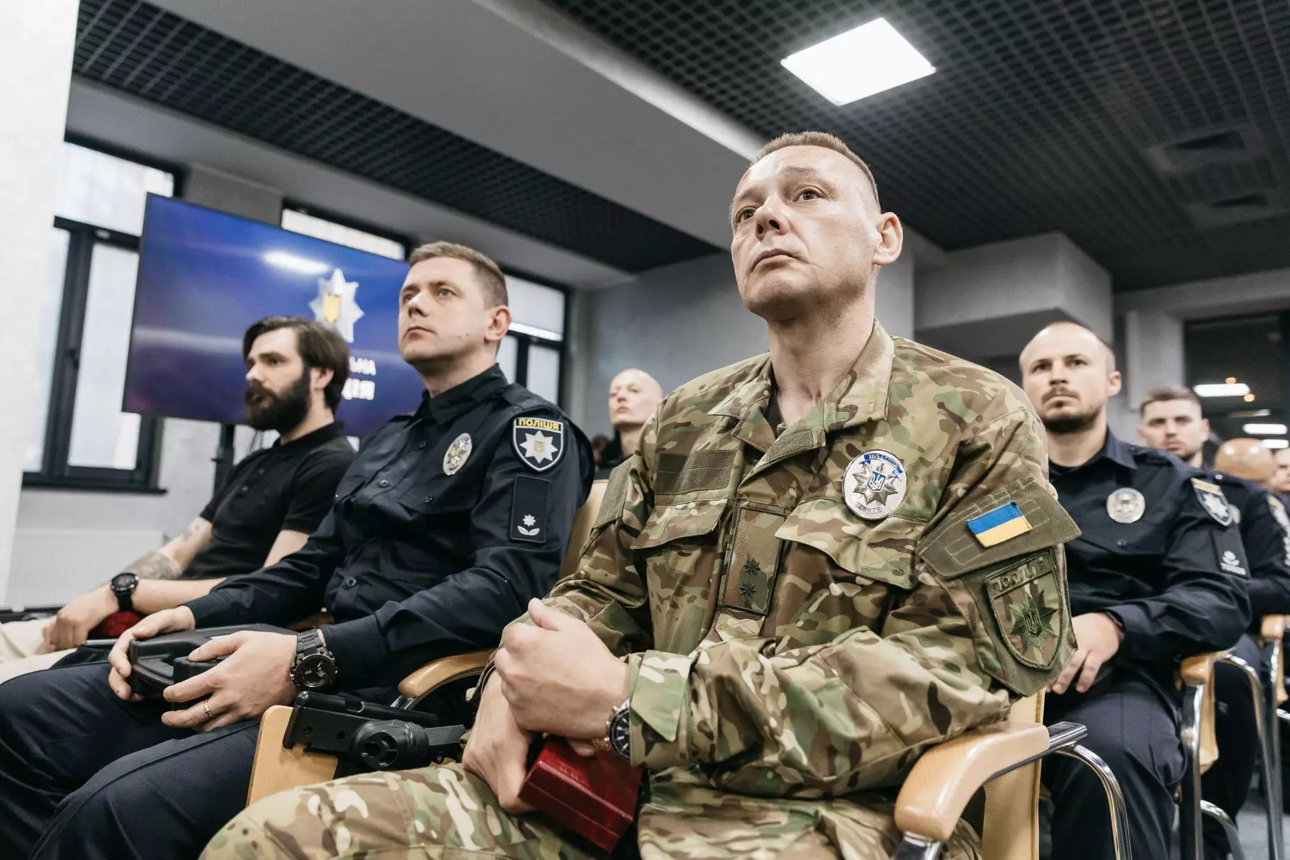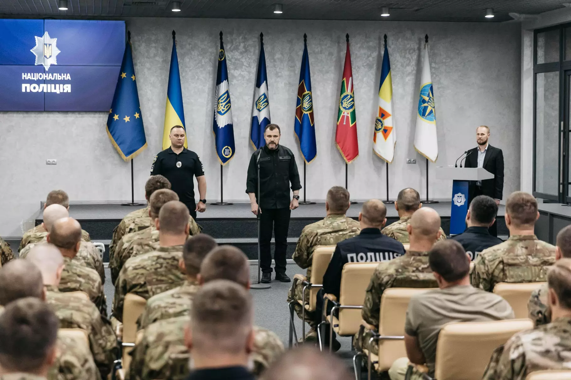 «За час війни поліція взяла на себе у рази більше відповідальності та функціоналу і трансформувалася у бойові підрозділи. Зокрема, це бригада «Лють», стрілецькі батальйони «КОРДу», підрозділи Департаменту патрульної поліції «Хижак». І це велика відповідальність за Батьківщину – за те, що відбувається всередині країни, зокрема, утримання криміногенної ситуації, порядку, спокою наших людей. З іншого боку – це відповідальність за лінію фронту. І я пишаюся кожним. Без вас ми б не мали таку сильну лінію оборони», – заявив Ігор Клименко, звертаючись до присутніх.