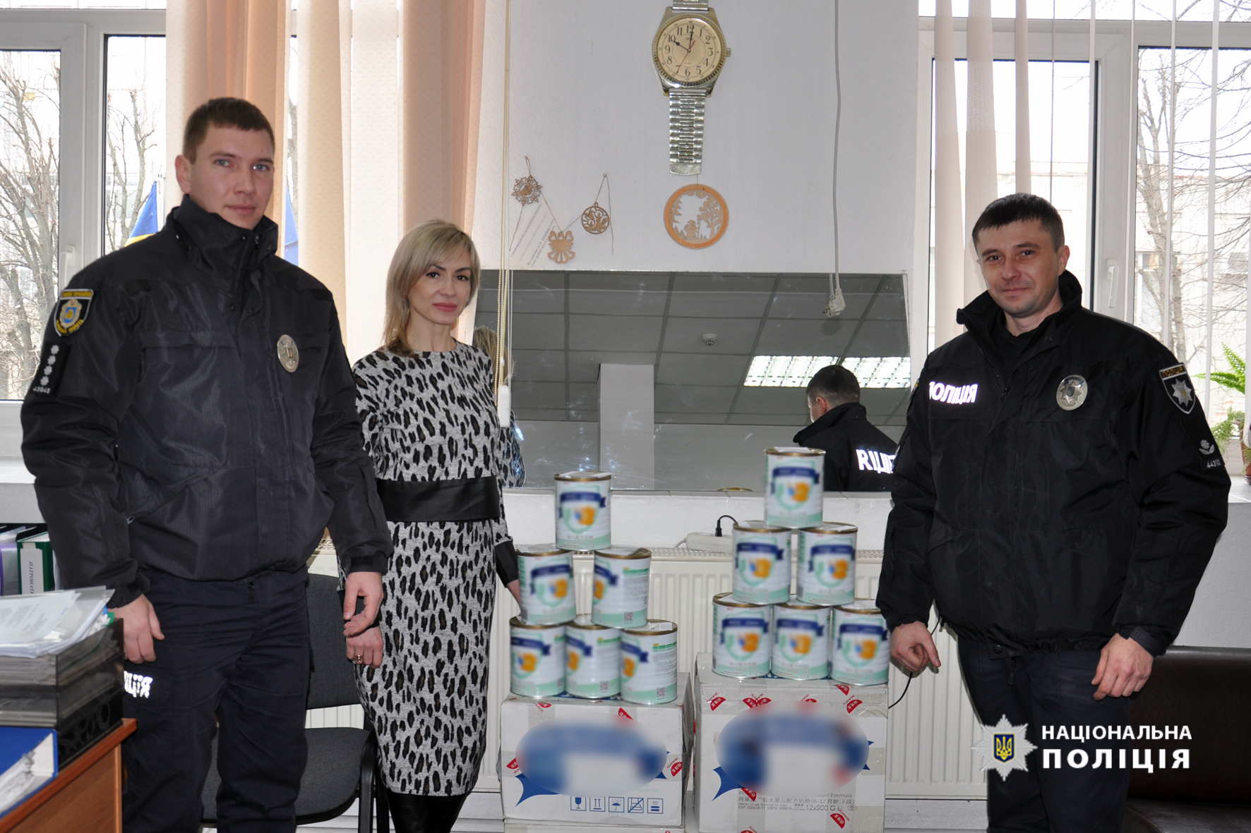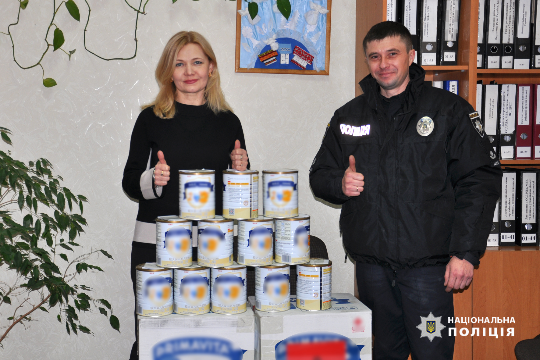 Суху суміш для малюків начальник ювенальної превенції Євген Карнаушенко передав сім'ям, які опинились в складних життєвих обставинах.