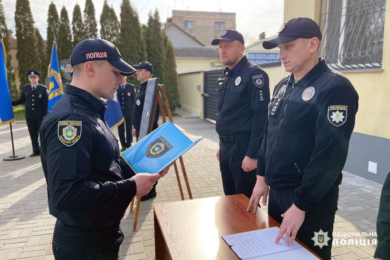 В урочистій обстановці правоохоронців вітали начальника Головного управління Національної поліції в Черкаській області Вячеслав Гурін, начальник управління кадрового забезпечення Іван Давиденко та голова поліцейської комісії Юрій Лобода.