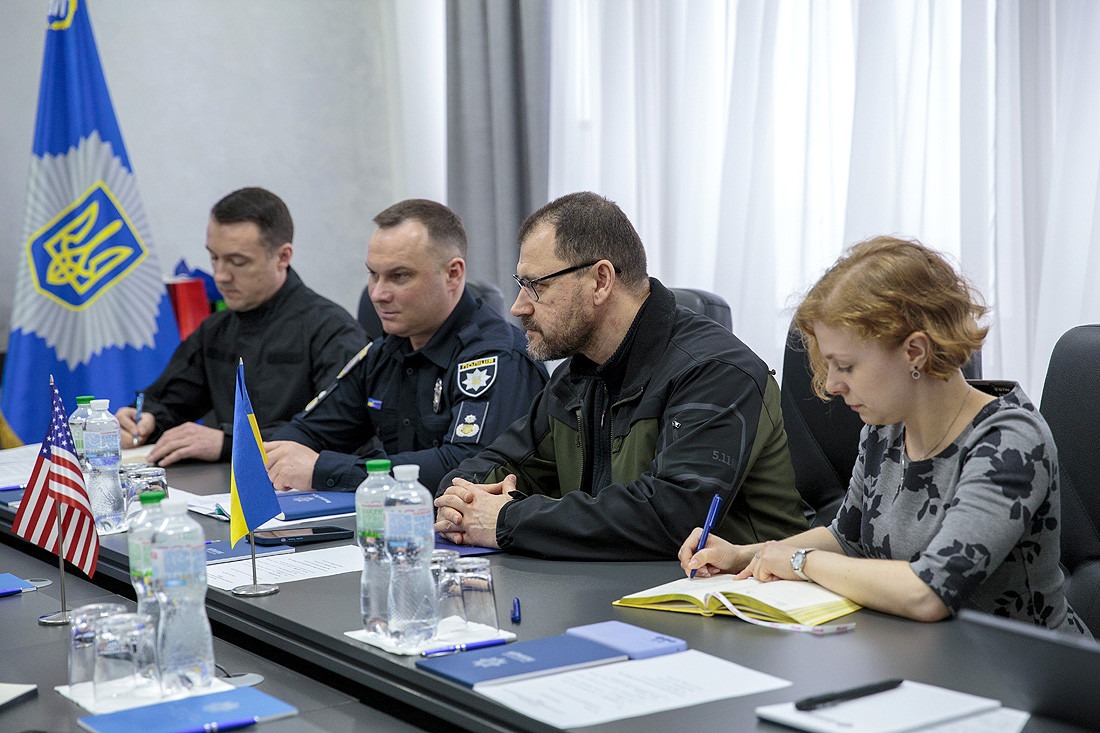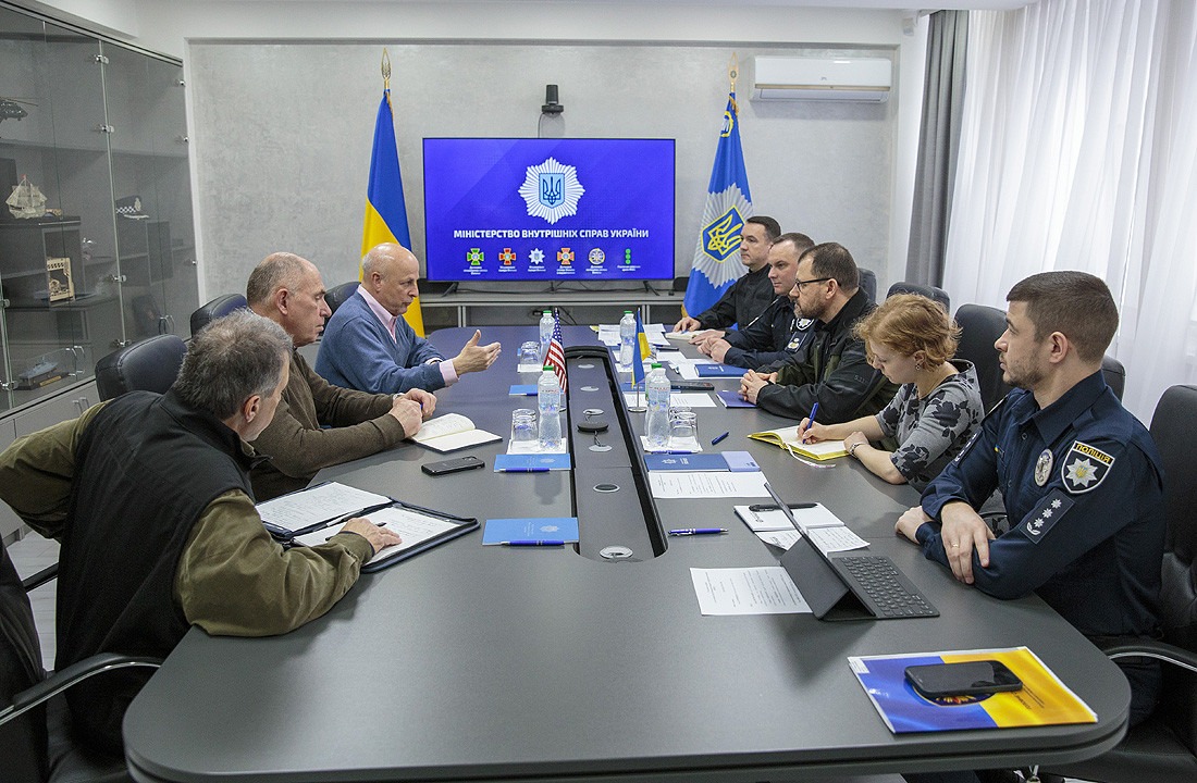 На початку зустрічі Ігор Клименко висловив вдячність американській делегації: «Насамперед я хочу висловити вдячність американському народові за ту підтримку, яку ви надаєте в боротьбі з ворогом із першого дня війни». Також очільник МВС розповів про допомогу, яка нещодавно надійшла від Фонду Говарда Баффета українським піротехнікам Херсонської області. Вони отримали два броньовані комплекси для механічного розмінування.