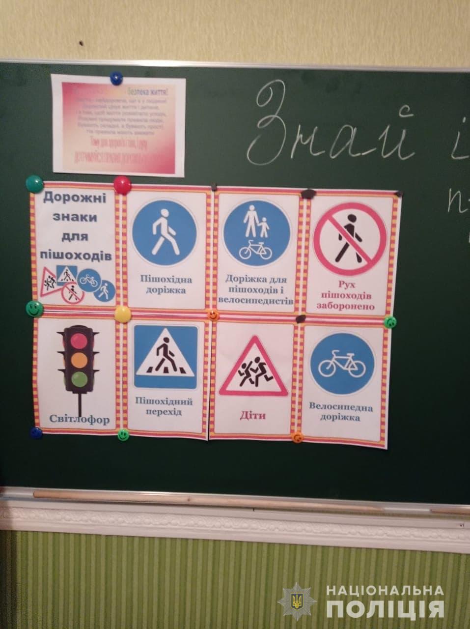 Також правоохоронці нагадали учням про найбільш поширені порушення Правил дорожнього руху та необхідність дотримання правил безпеки, зокрема, дорогою до школи та додому. Вивчали й повторювали дорожні знаки.