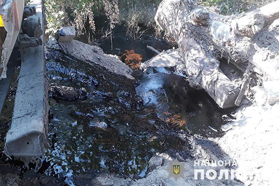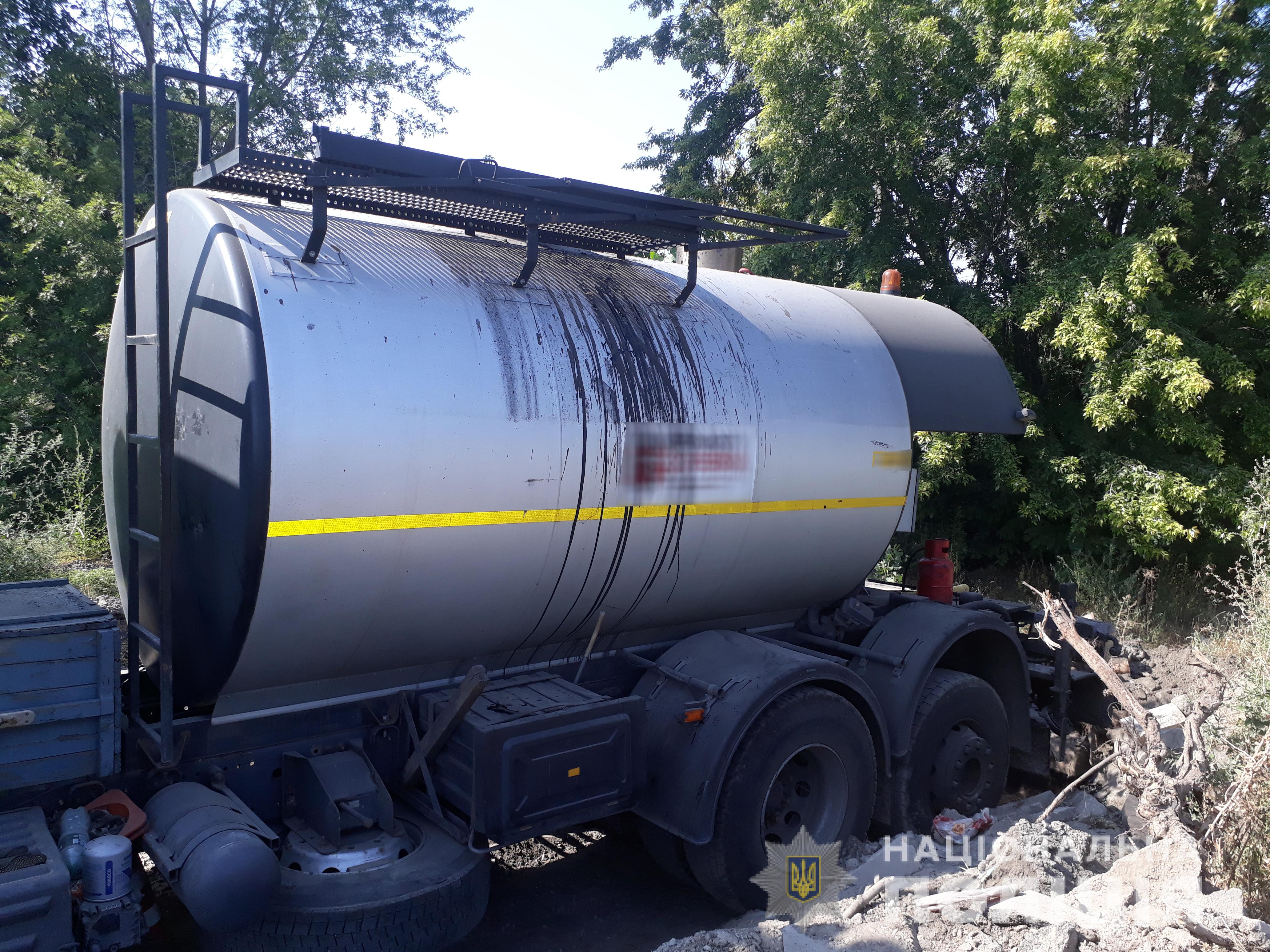 Перебуваючи на завданні, правоохоронці неподалік однієї із промислових зон побачили вантажівку, яка заїхала у кущі. Підійшовши ближче до цистерни правоохоронці виявили, що з неї витікає невідома речовина чорного кольору. На місце події поліцейські викликали слідчо-оперативну групу для документування правопорушення. Водія та механіка вказаної вантажівки було запрошено до відділу поліції для з’ясування всіх обставин.