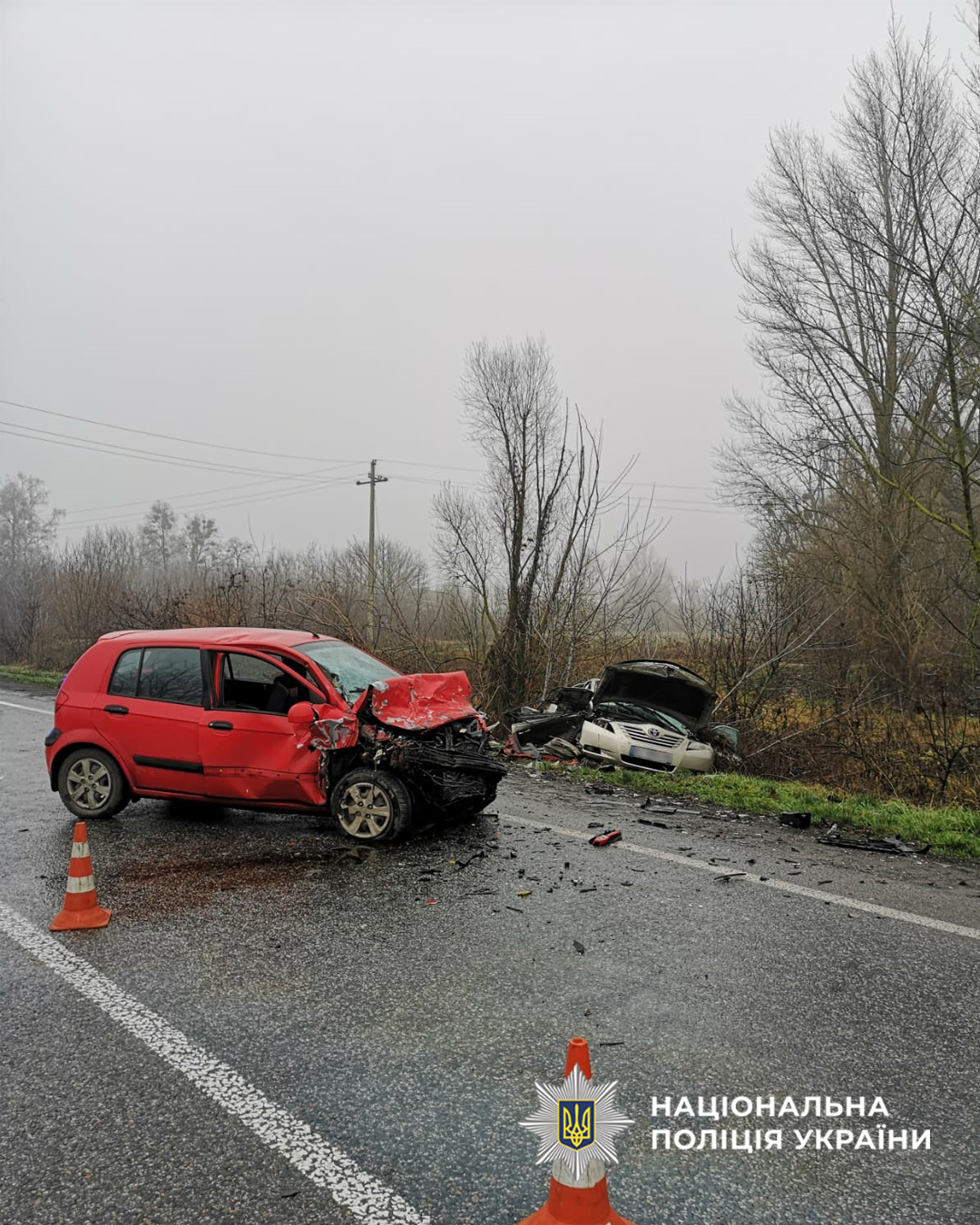 Попередньо, 45-річна водійка автомобіля "Toyota Camry" на заокругленні проїзної частини не впоралася з керуванням, виїхала на зустрічну смугу та зіткнулася з автомобілем "Hyundai Getz", під керуванням 54-річної жінки-водія.