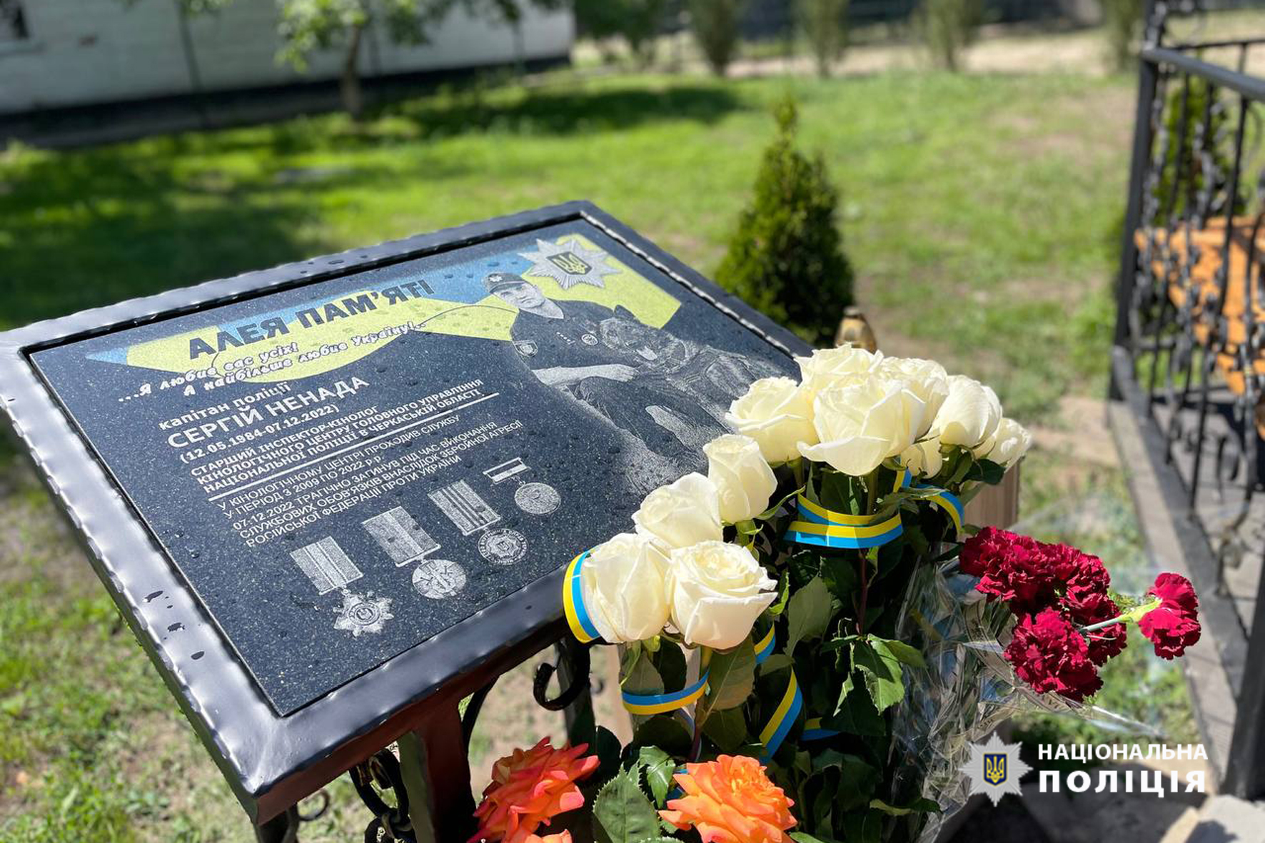 Також важлива подія зібрала усіх на кінологічному центрі. Сьогодні, за ініціативи та фінансової підтримки батьків Сергія Ненади відкрито меморіальну дошку старшому інспектору-кінологу кінологічного центру ГУНП в Черкаській області Сергію Ненаді, який трагічно загинув 7 грудня 2022 року, виконуючи бойове завдання в Херсонській області.
