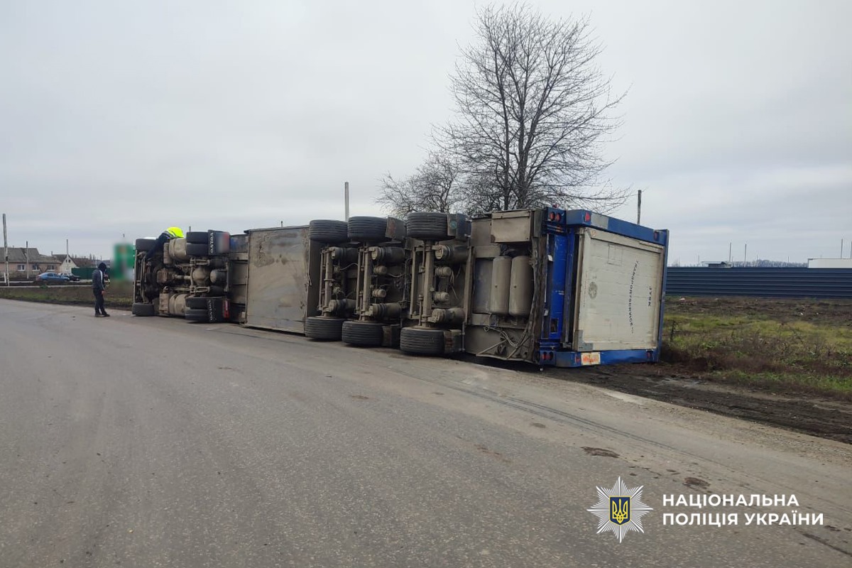 Дорожньо-транспортна пригода сталася 6 грудня близько 12:00 години. 51 - річний водій вантажного автомобіля Volvo, рухаючись вулицею Першотравневою, на заокругленій ділянці дороги не впорався з керуванням та перекинувся. У ДТП ніхто не постраждав.