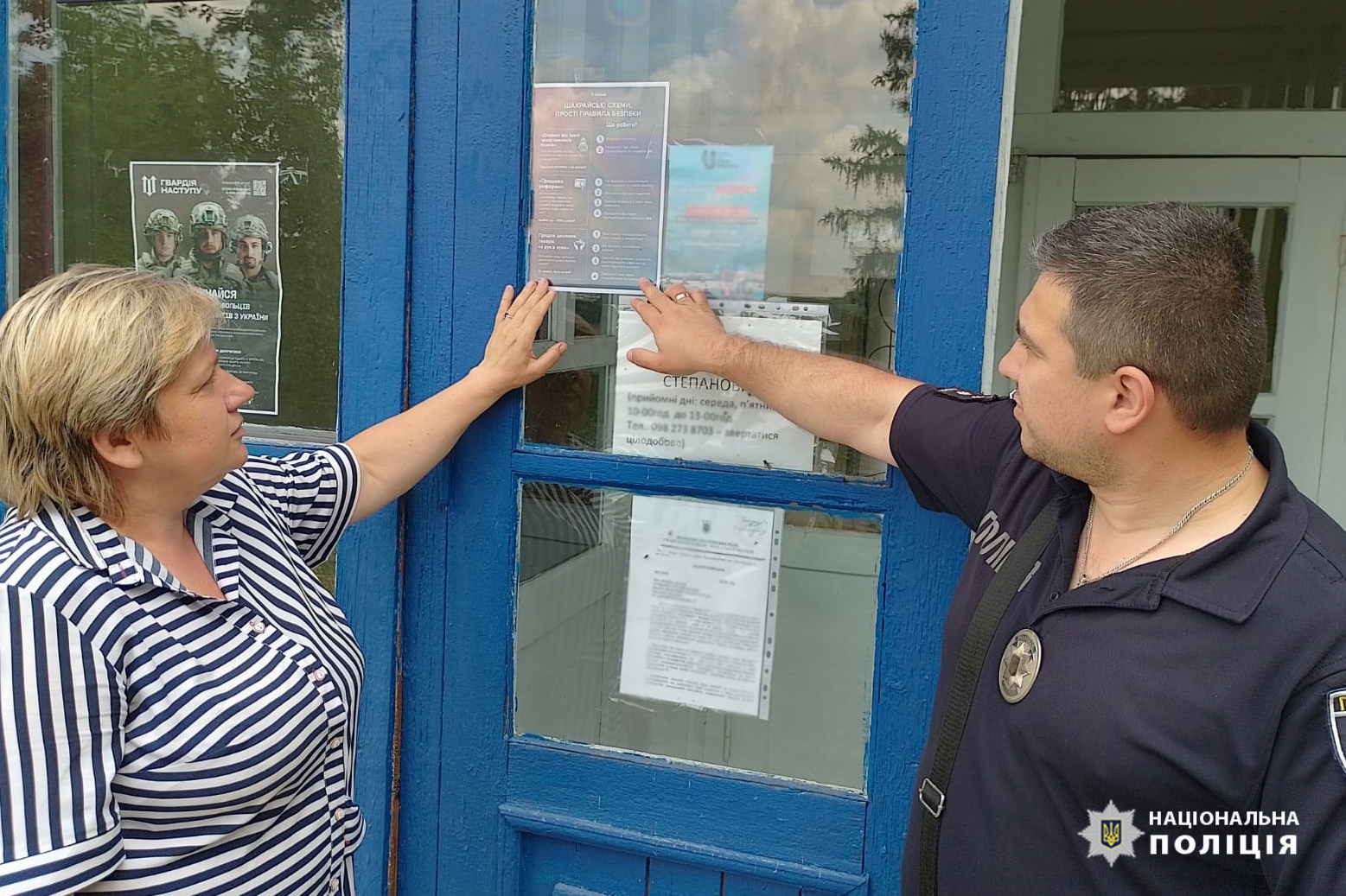 З уманцями та жителями району проводять бесіди, роздають інформативні листівки, залишають памʼятки у у громадських місцях.