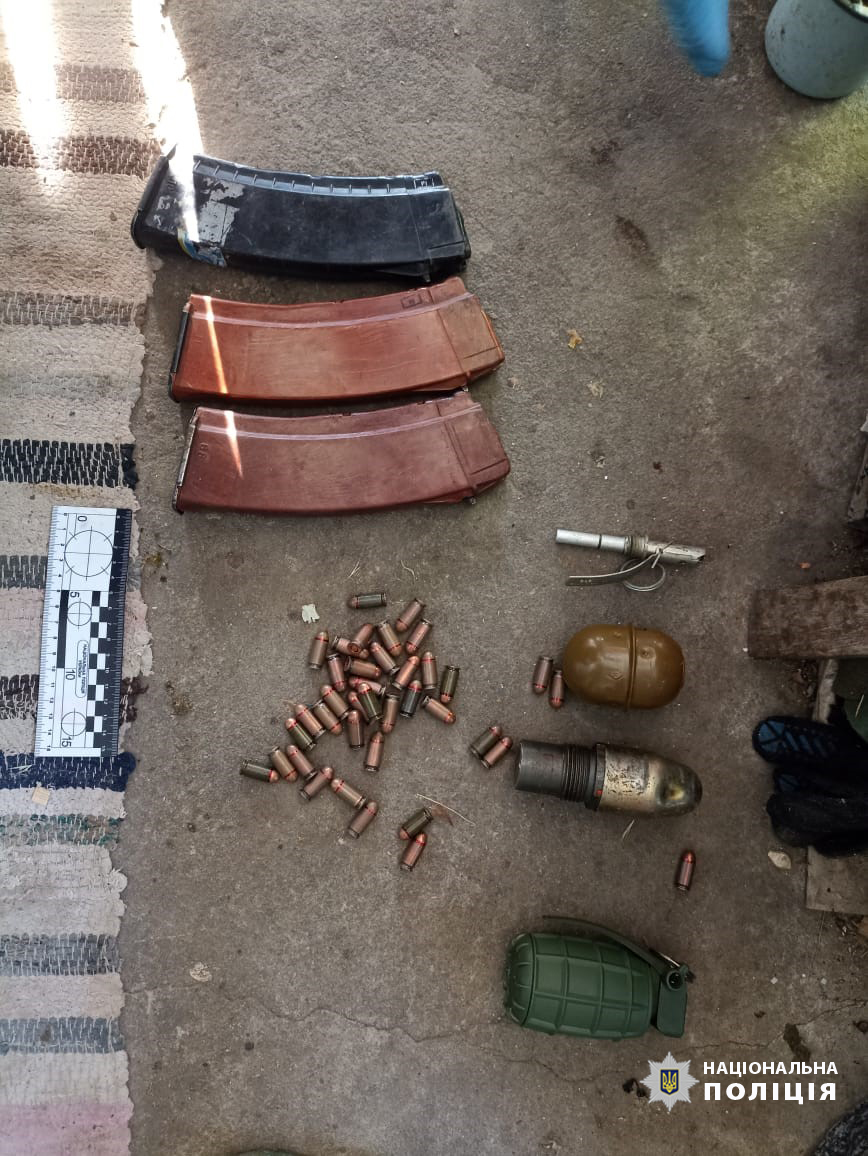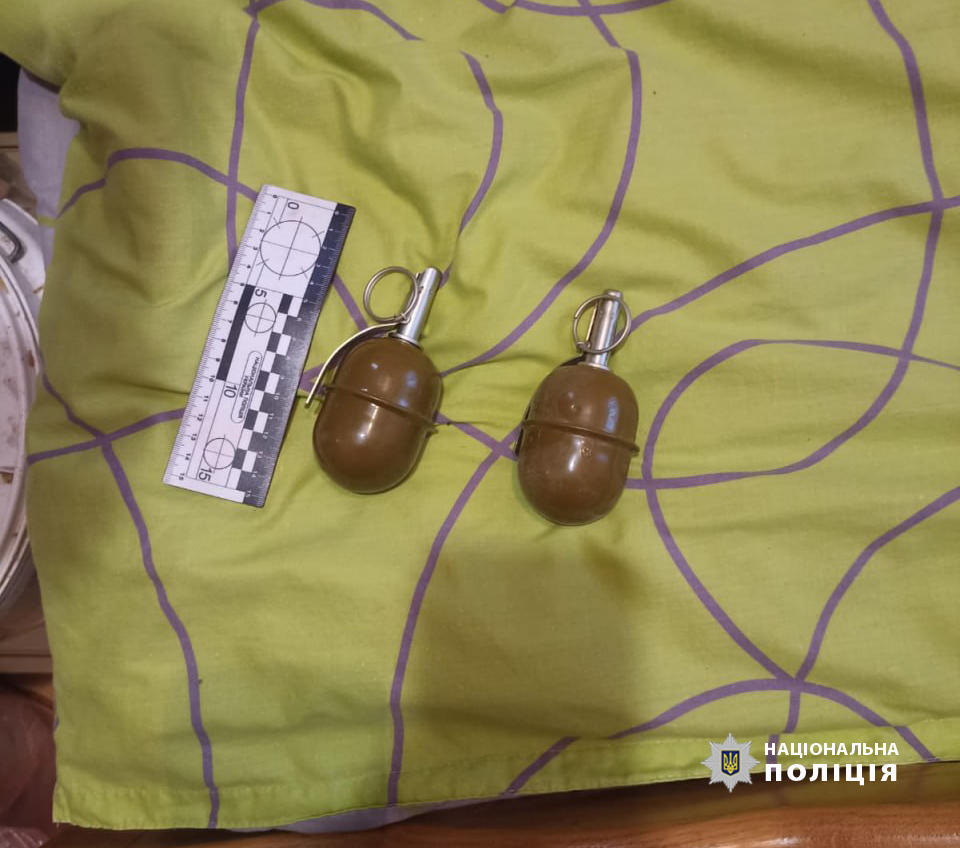 У ході обшуку поліцейські виявили чотири предмети схожих на гранати, з них три РГД – 5 та одна DM-51, а також запали до них, постріл гранатометний ВОГ та підривник з маркуванням RGM. Також у чоловіка виявили два польові монітори та шість предметів зв’язку - схожих на радіостанції. Набої різного калібру у кількості 68 штук та три магазини до автоматичної зброї.