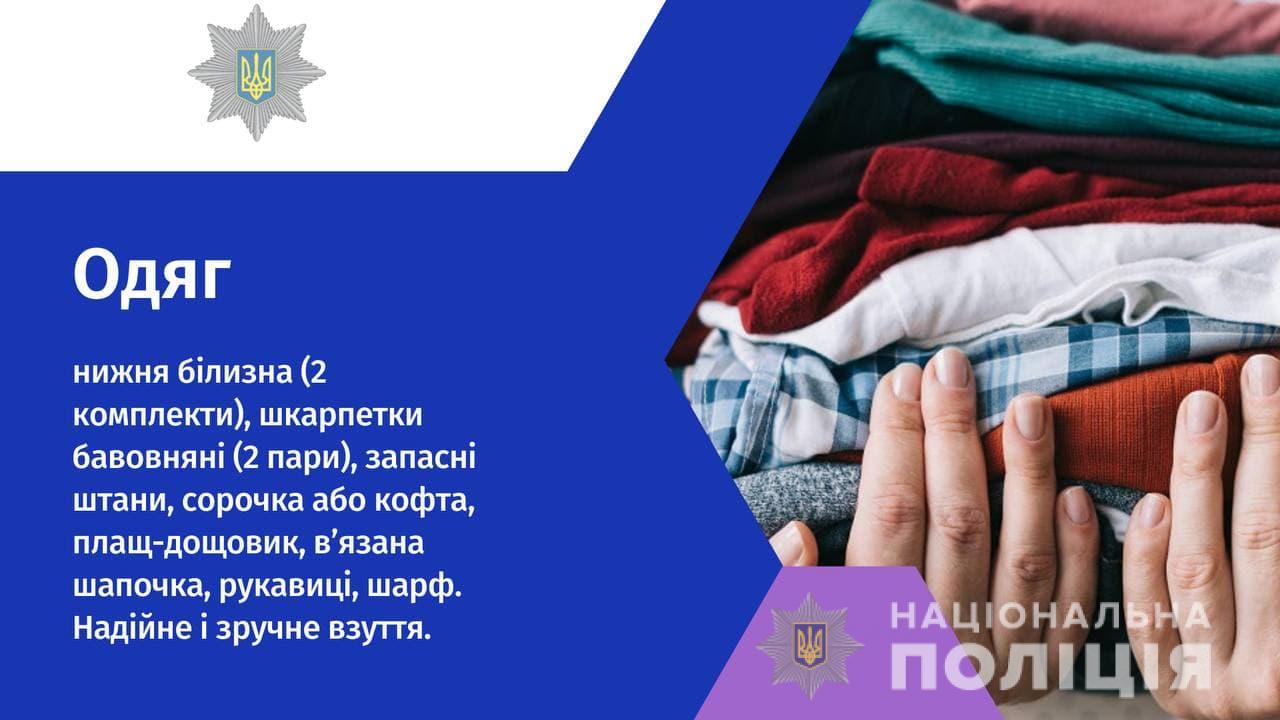 Речі на випадок евакуації ліпше скласти заздалегідь. У найкращому разі тривожна валіза вам так і не знадобиться та просто стоятиме в кутку. Але якщо час «Ч» усе ж настане — підготований набір необхідних речей буде у вас ”під рукою”.
