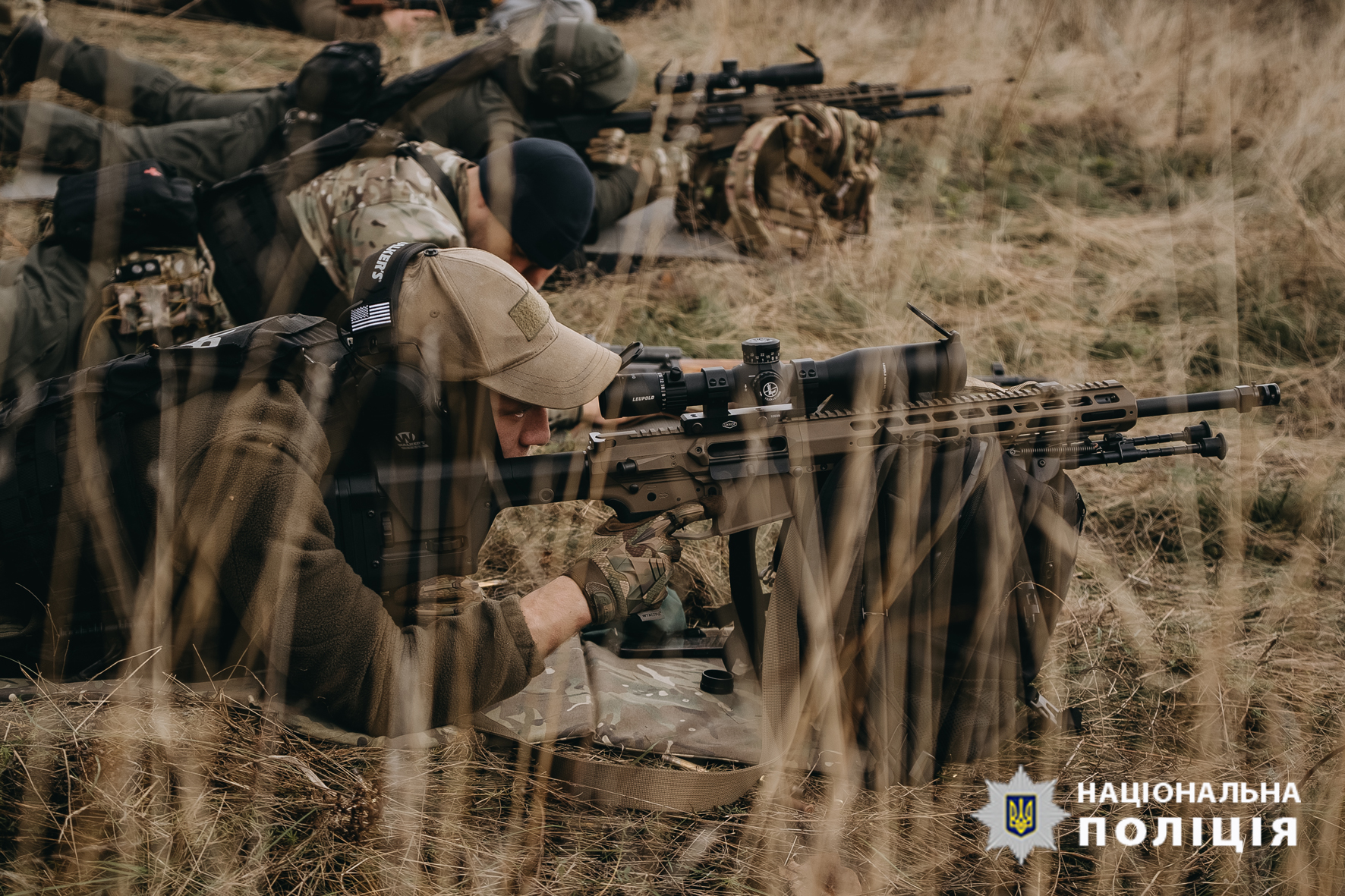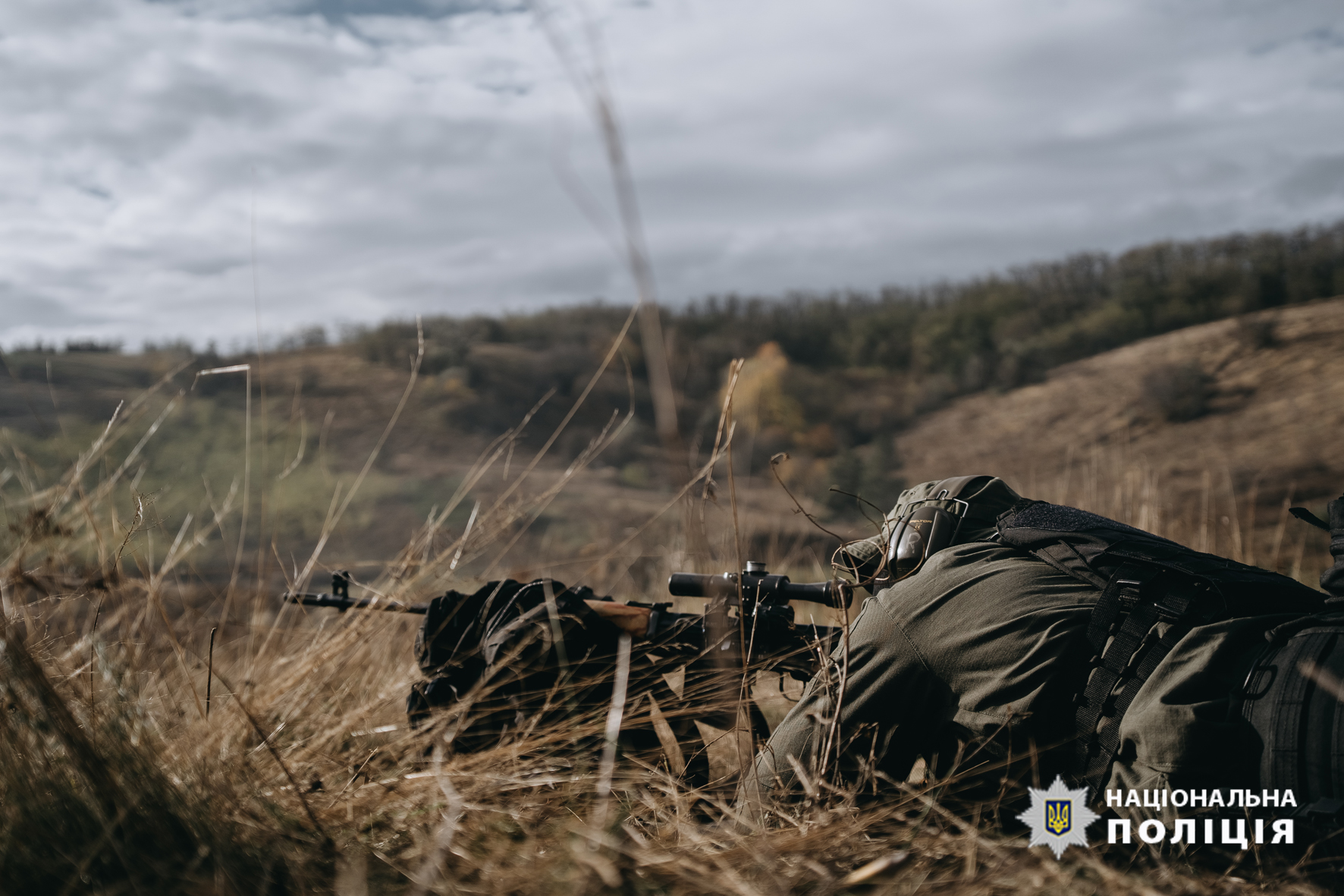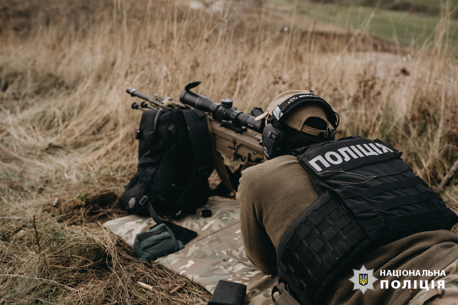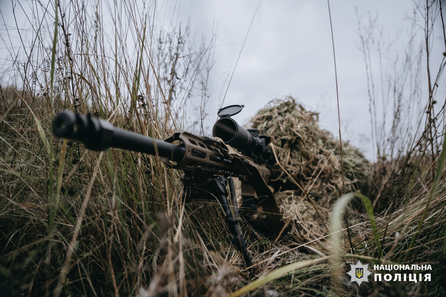 Поліцейські снайпера батальйону поліції особливого призначення ГУНП в Черкаській області проводять тактичні навчання.