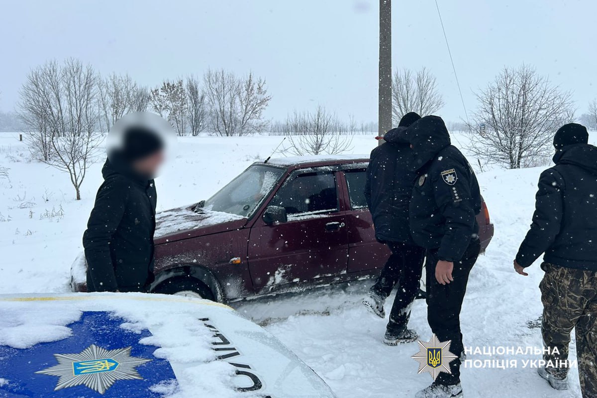 Негода на Черкащині: поліцейські допомагають водіям та пішоходам долати наслідки снігопаду