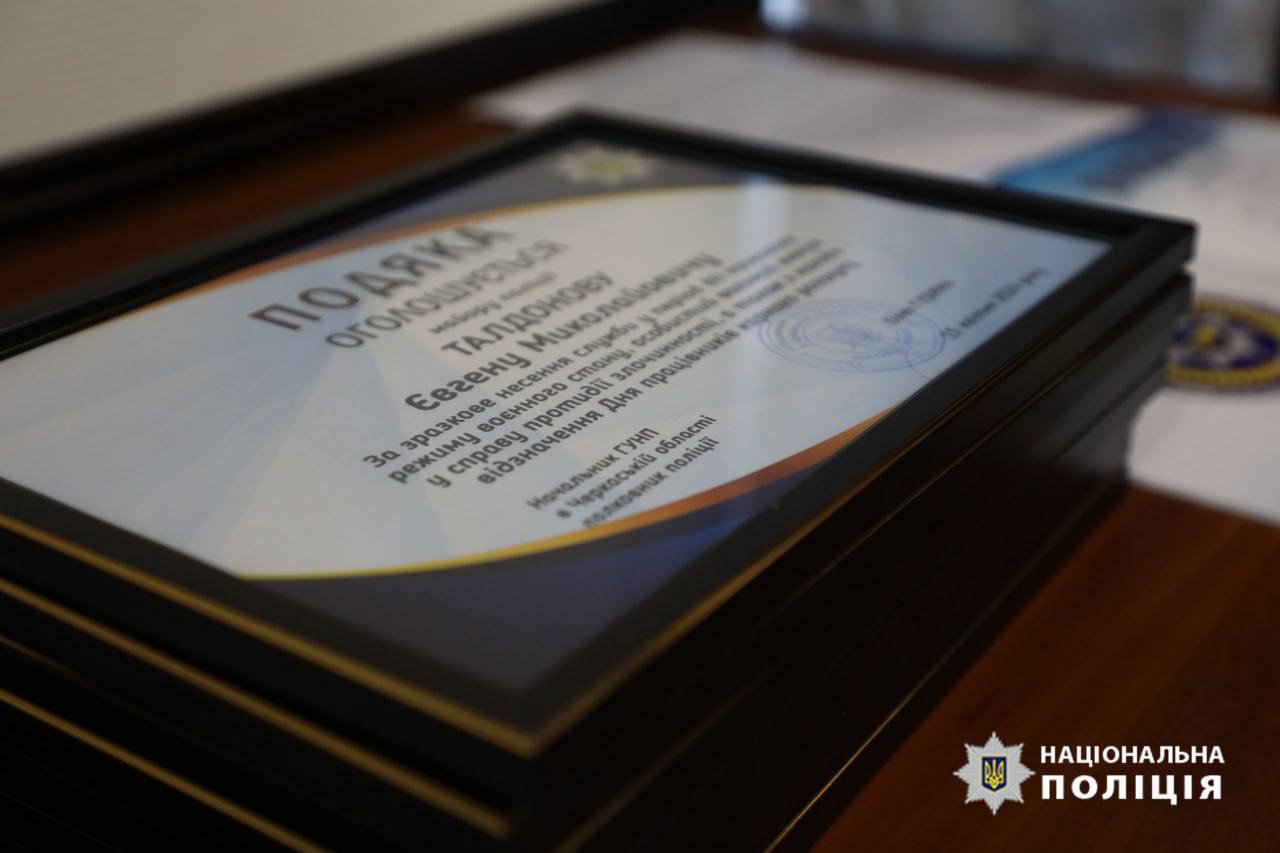 Разом із тимчасово виконуючим обов'язків заступника начальника — начальником управління карного розшуку Віталієм Овчаренком та головою профспілки Валерієм Недопасом вручити подяки та відзначити кращих оперативників поліції Черкащини.
