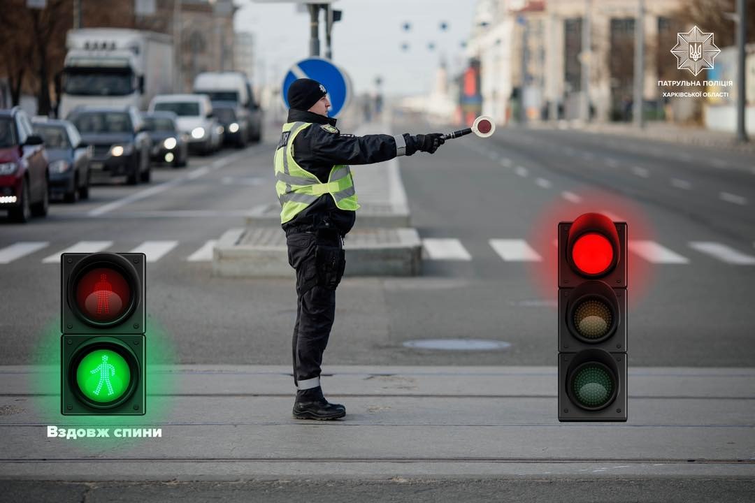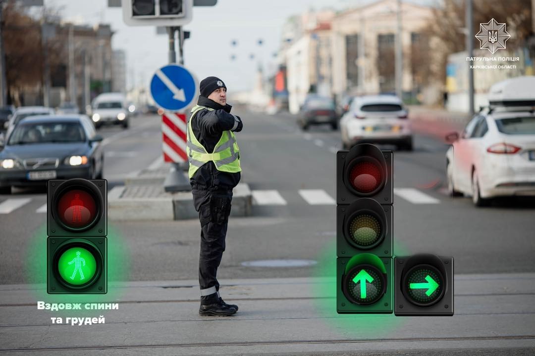 Коли регулювальник регулює дорожній рух на перехресті, його жести мають пріоритет над сигналами світлофора та відповідними дорожніми знаками.