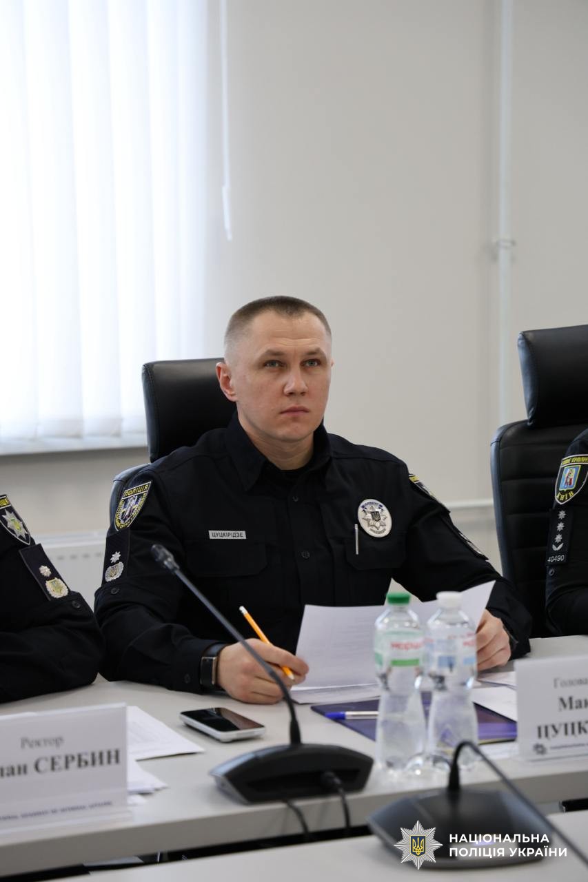 Після завершення розподілу він провів виховну годину з курсантами академії та наголосив на ключових цінностях служби — неухильному дотриманні закону, принципах справедливості, честі та особистій відповідальності поліцейського. За його словами, в умовах війни ці засади мають особливе значення, адже від професійності, витримки й моральної стійкості правоохоронців безпосередньо залежать безпека громадян і стійкість держави.