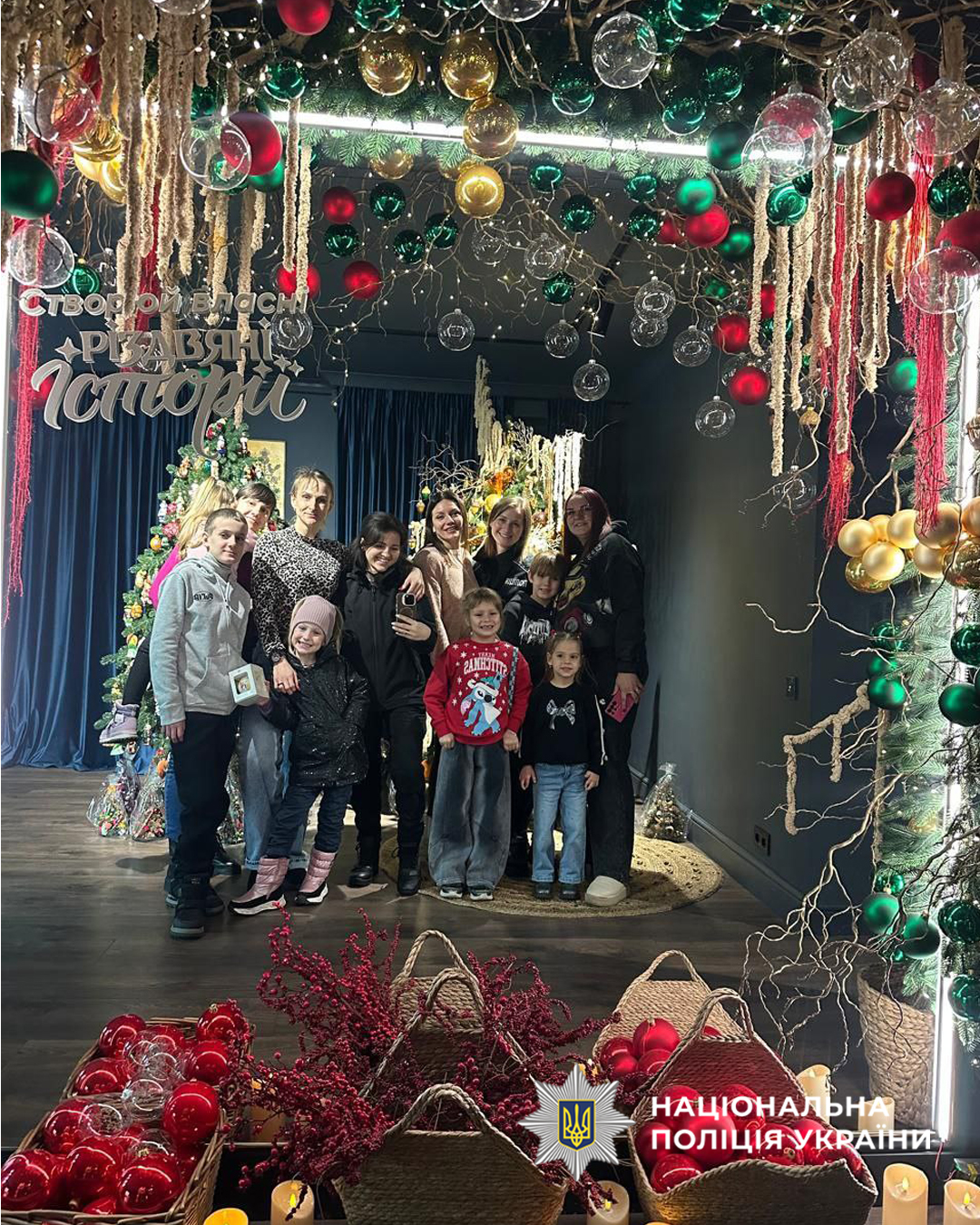 Напередодні зимових свят поліцейські Черкаської області, які здійснюють соціальний супровід працівників поліції, постраждалих внаслідок війни, та членів їхніх родин, запросили діток загиблих поліцейських у «Маєток Різдвяних Історій», щоб подарувати їм теплі моменти.