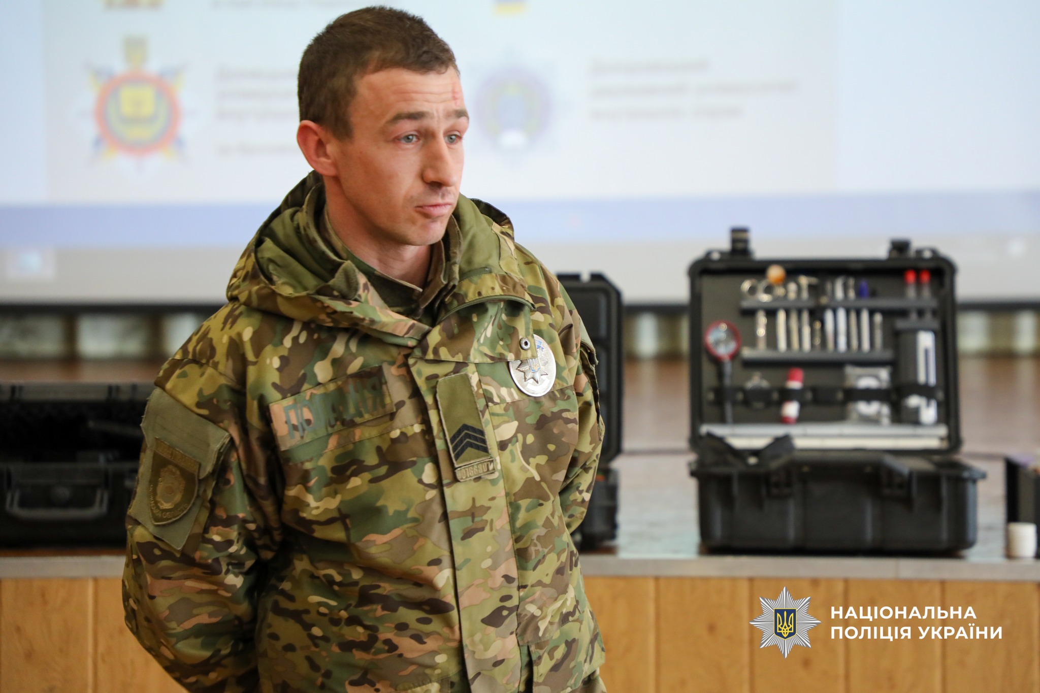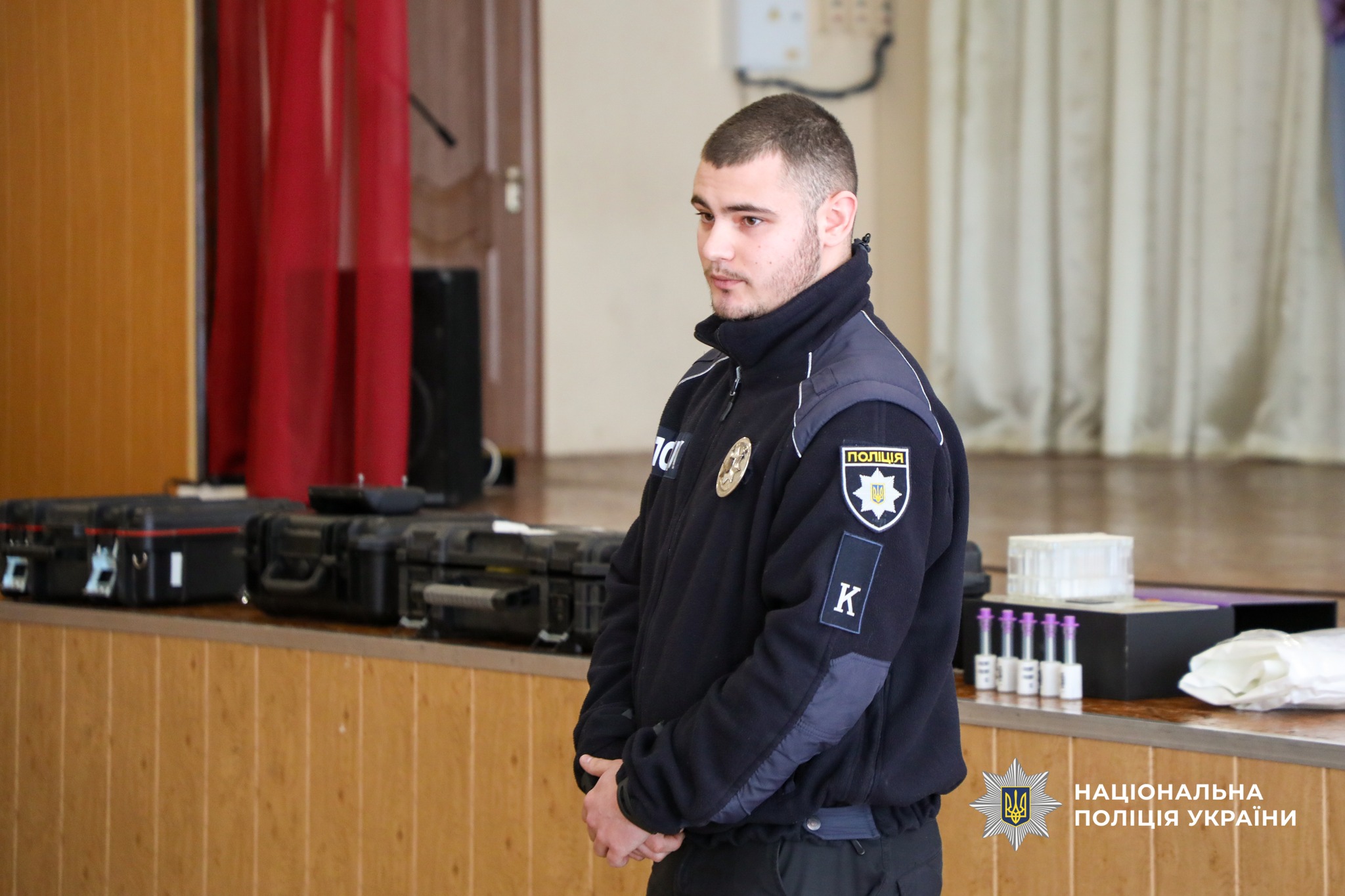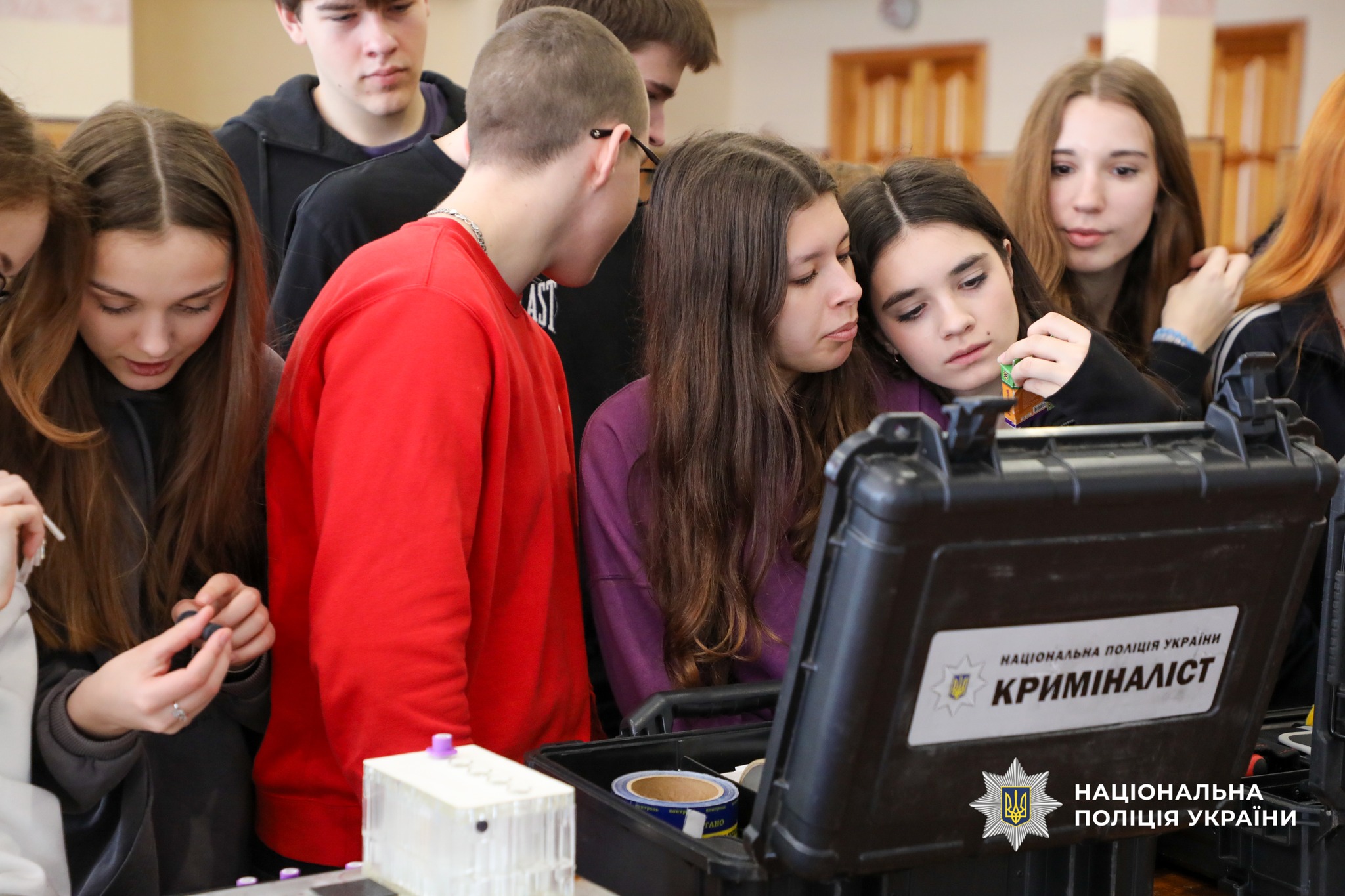 Заступник начальника відділу криміналістичного забезпечення Максим Осадчук під час зустрічі із школярами продемонстрував декілька криміналістичних валіз та детально розповів про їхнє призначення. Він пояснив, як спеціальне обладнання та сучасні технології допомагають експертам якісно фіксувати сліди, збирати докази й ефективно працювати над розкриттям злочинів.