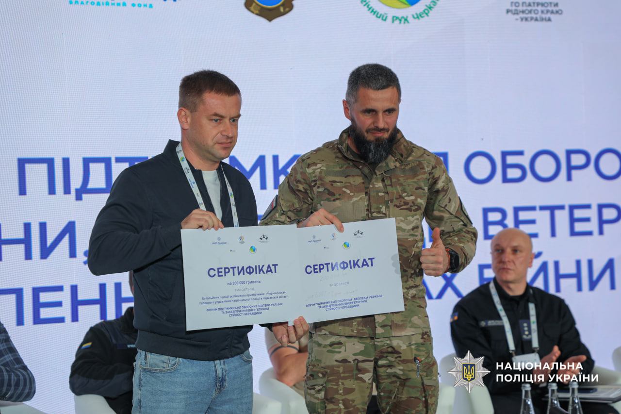 Командир стрілецького батальйону поліції Олександр Черкавський разом із помічником керівника з питань ветеранської політики Ігорем Головченком відвідали «Форум підтримки Сил оборони і безпеки України та забезпечення енергетичної стійкості регіону», що відбувся на Черкащині.