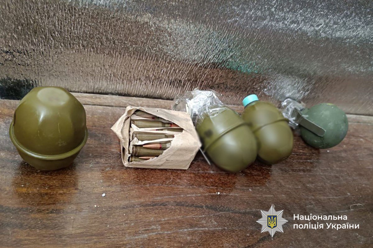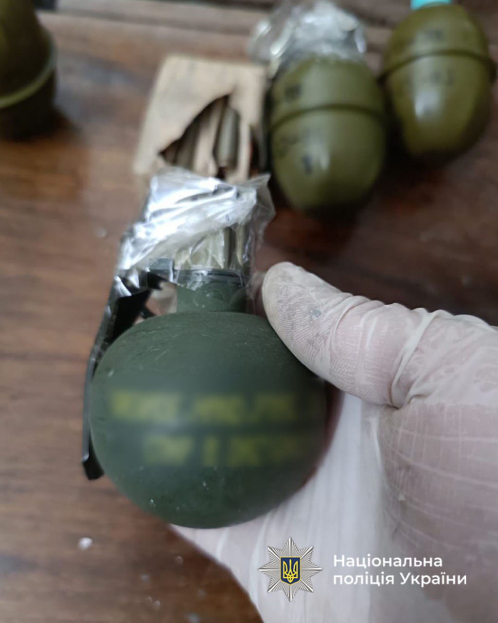Під час санкціонованого обшуку за процесуального керівництва Канівського відділу Смілянської окружної прокуратури в помешканні фігуранта правоохоронці вилучили 2100 набоїв різного калібру, металевий цинк, зброю, більш як 20 гранат різного типу: Ф-1, РГД-5, РГО-78, РГН, М-67, ДМ-51, «Актив», М430А, підривачі та запали до гранат, РПГ-75-М 02-23, метальні заряди, вибухові речовини та тротилову шашку, електродетонатор та наркотики.