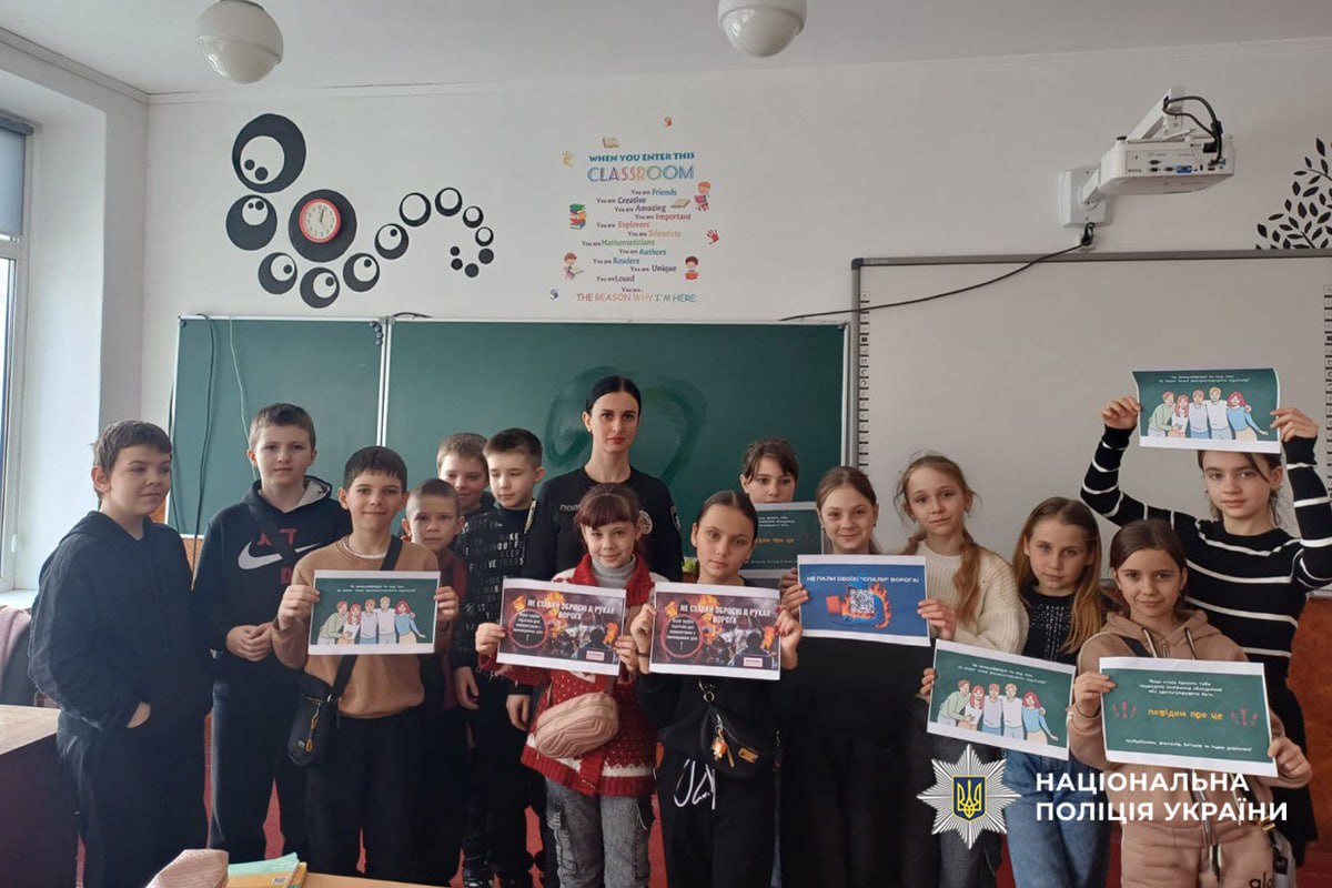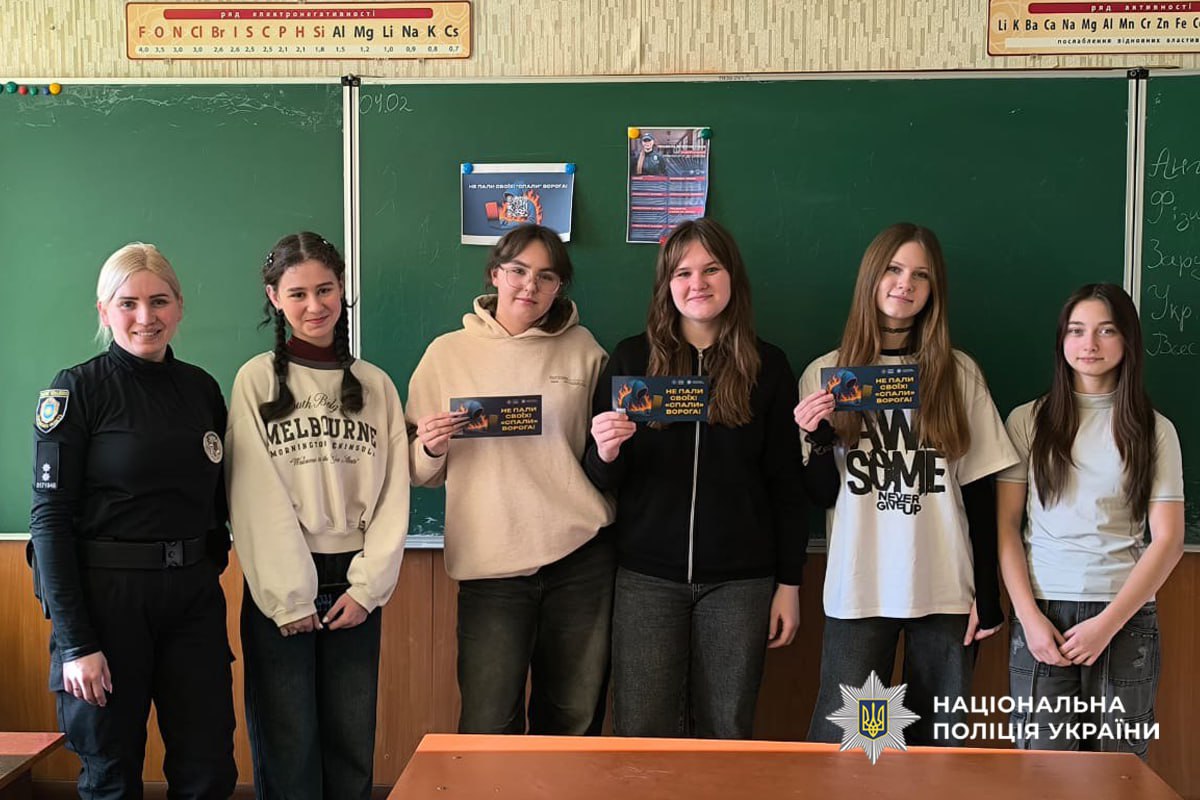 Працівники служби освітньої безпеки Золотоніського райвідділу поліції провели для учнів профілактичне заняття. Головна мета — запобігти втягненню підлітків у злочинну діяльність, зокрема у підпали військових та стратегічних об’єктів.