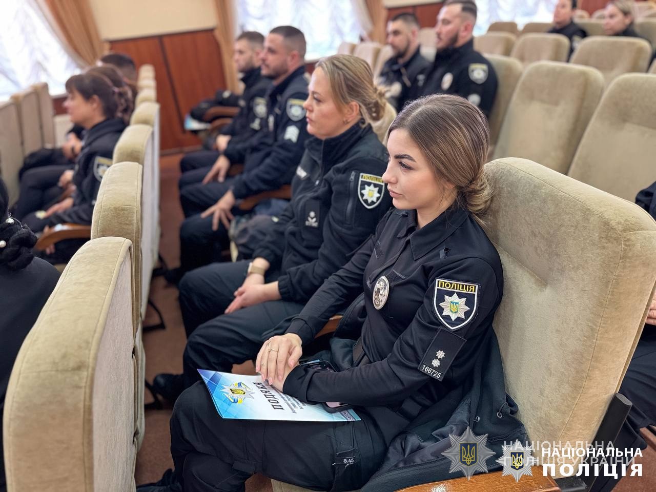 У рамках заходу відзначили працівників служби освітньої безпеки та поліцейських міжнародного співробітництва з нагоди їхніх професійних свят. Подяки та відзнаки вручили заступник начальника ГУНП – начальник кримінальної поліції Олександр Пак, начальник відділу організації служби освітньої безпеки Володимир Міщенко та голова профспілки Валерій Недопас. Вони подякували поліцейським за сумлінну службу та високі результати в роботі.