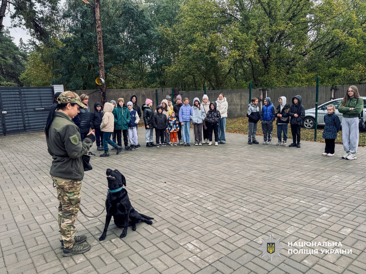Під час заходу кінологи розповіли дітям про основні напрями діяльності кінологічної служби, зокрема роботу службових собак у пошуку вибухівки, наркотиків, розшуку людей та затриманні правопорушників. Також школярі мали змогу побачити демонстраційні виступи чотирилапих помічників.