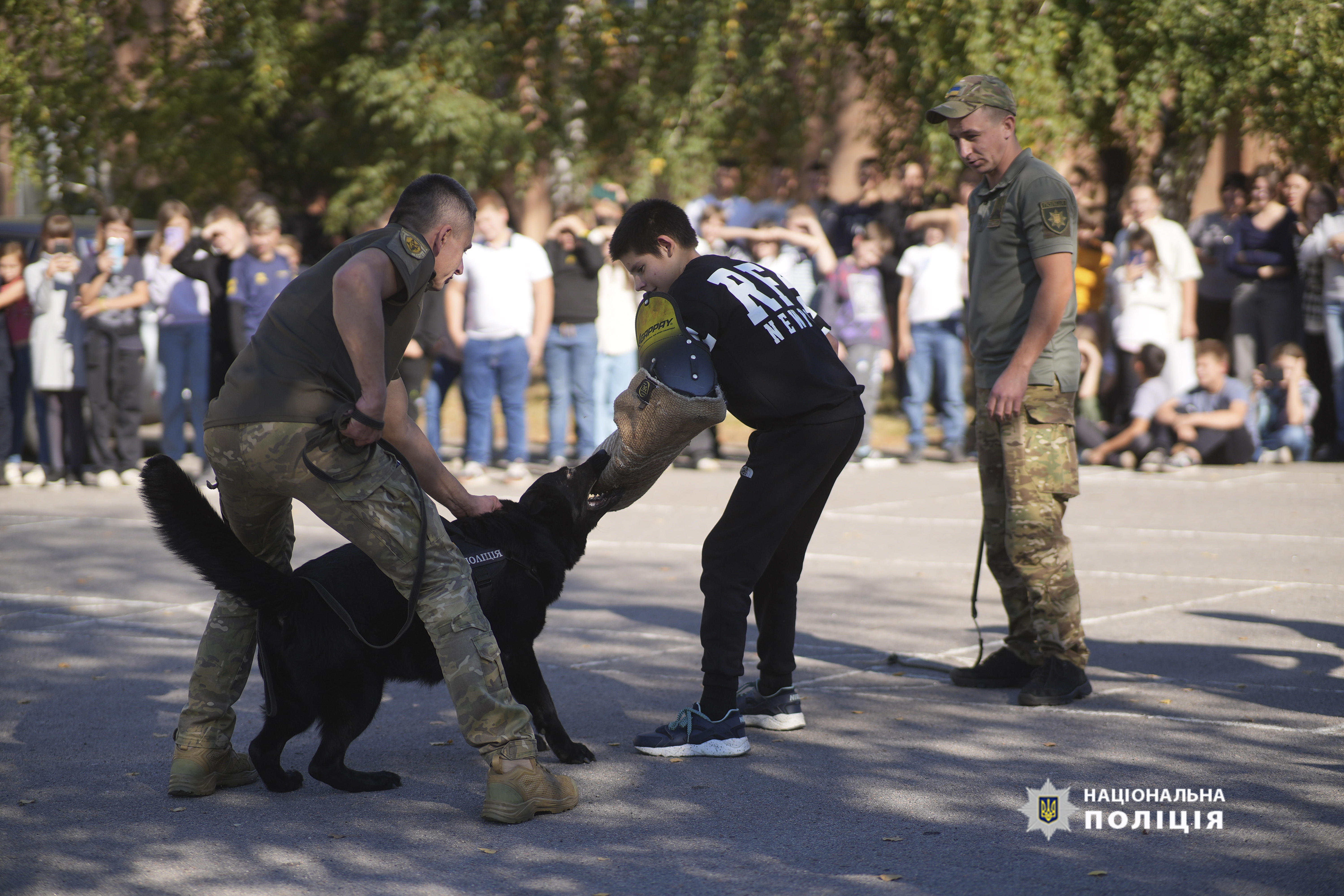 Кінологи провели для малечі показ поліцейських собак та показали, на що здатні їхні чотирилапі вихованці. Під час показових виступів службові собаки продемонстрували, як вони шукають загублені речі та виявляють наркотики, а також як працюють над затриманням злочинців.